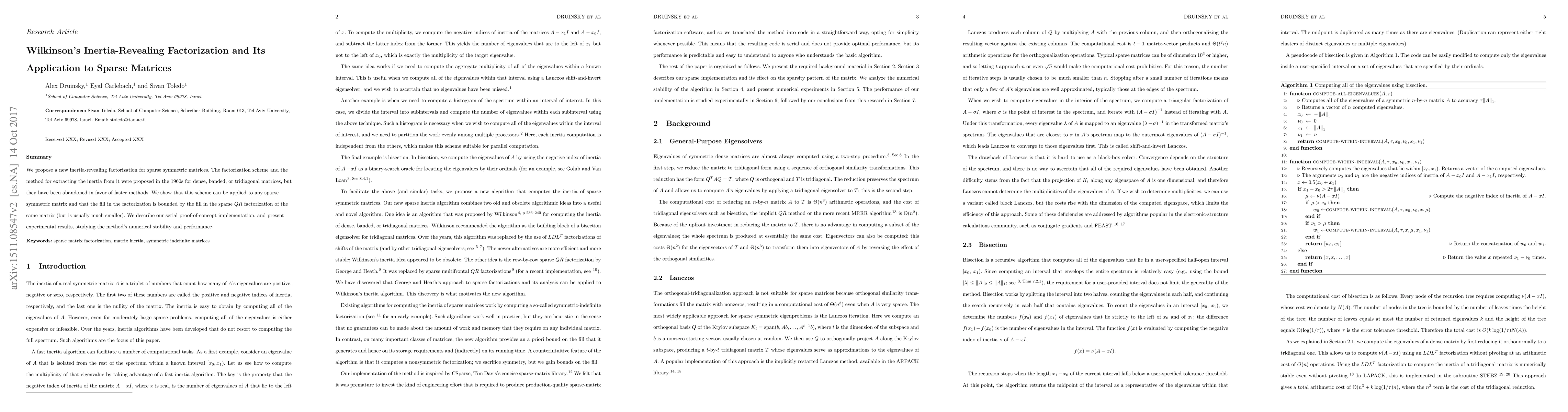 Wilkinson's inertia-revealing factorization is revisited for sparse symmetric matrices, demonstrating bounded fill-in and usually smaller size compared to sparse QR factorization. Experimental results show the method's stability and performance, reviving a decades-old technique for modern sparse matrix applications.