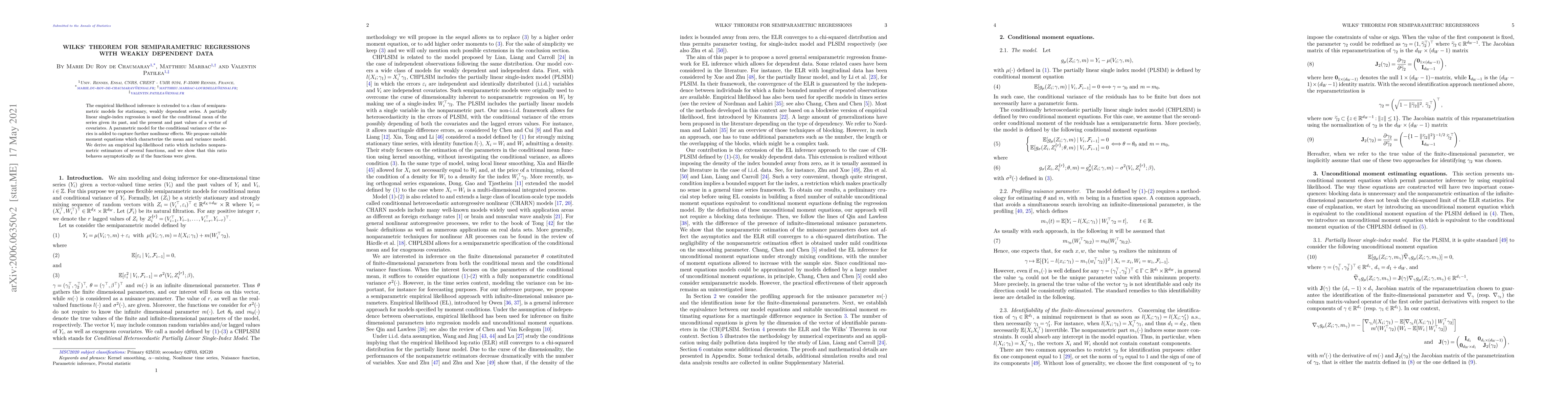 The empirical likelihood inference is extended to a class of semiparametric models for stationary, weakly dependent series. A partially linear single-index regression is used for the conditional mean of the series given its past, and the present and past values of a vector of covariates. A parametric model for the conditional variance of the series is added to capture further nonlinear effects. We propose a fixed number of suitable moment equations which characterize the mean and variance model. We derive an empirical log-likelihood ratio which includes nonparametric estimators of several functions, and we show that this ratio has the same limit as in the case where these functions are known.