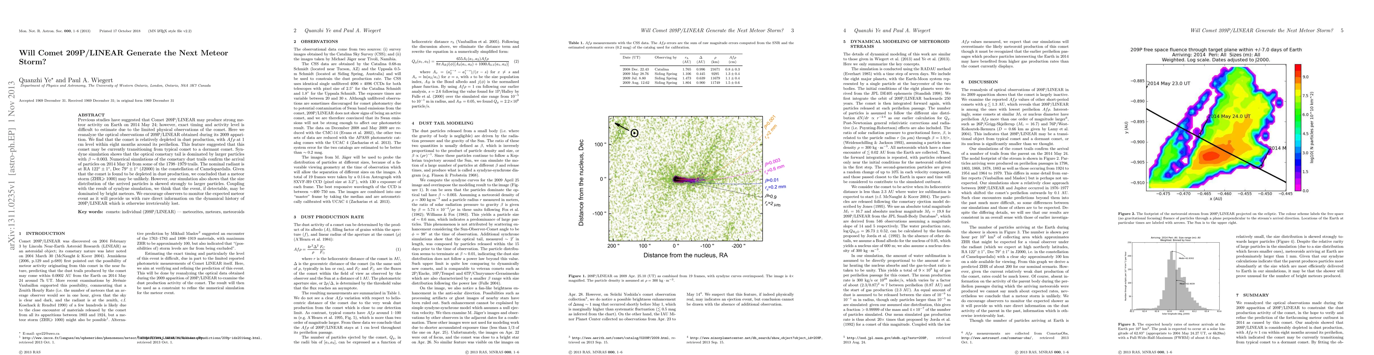 Previous studies have suggested that Comet 209P/LINEAR may produce strong me- teor activity on Earth on 2014 May 24; however, exact timing and activity level is difficult to estimate due to the limited physical observations of the comet. Here we reanalyze the optical observations of 209P/LINEAR obtained during its 2009 appari- tion. We find that the comet is relatively depleted in dust production, with Af {\rho} at 1 cm level within eight months around its perihelion. This feature suggested that this comet may be currently transitioning from typical comet to a dormant comet. Syn- dyne simulation shows that the optical cometary tail is dominated by larger particles with {\beta} ~ 0.003. Numerical simulations of the cometary dust trails confirm the arrival of particles on 2014 May 24 from some of the 1798-1979 trails. The nominal radiant is at RA 122 +/- 1 deg, Dec 79 +/- 1 deg (J2000) in the constellation of Camelopardalis. Given that the comet is found to be depleted in dust production, we concluded that a meteor storm (ZHR>=1000) may be unlikely. However, our simulation also shows that the size distribution of the arrived particles is skewed strongly to larger particles. Coupling with the result of syndyne simulation, we think that the event, if detectable, may be dominated by bright meteors. We encourage observers to monitor the expected meteor event as it will provide us with rare direct information on the dynamical history of 209P/LINEAR which is otherwise irretrievably lost.