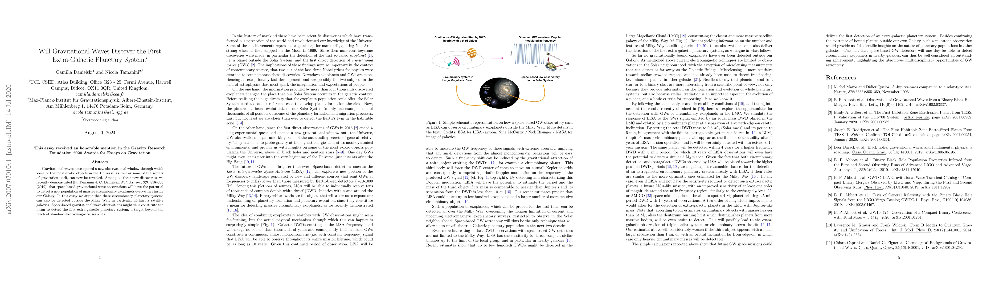 This research suggests that space-based gravitational wave detectors could potentially identify planetary systems outside our galaxy, including in its satellite galaxies. Such discoveries would mark the first detection of extra-galactic planets, beyond the capabilities of traditional electromagnetic methods.