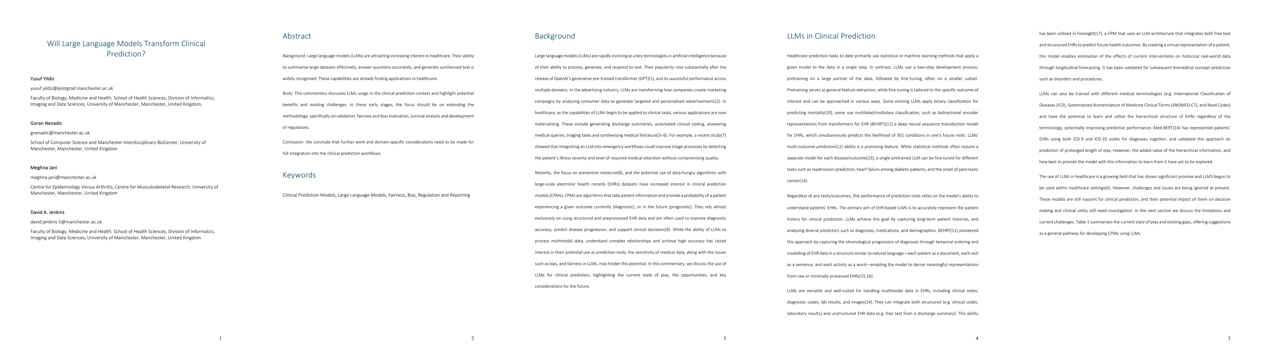 The paper is a commentary discussing the usage of large language models (LLMs) in clinical prediction, focusing on their potential benefits and existing challenges.