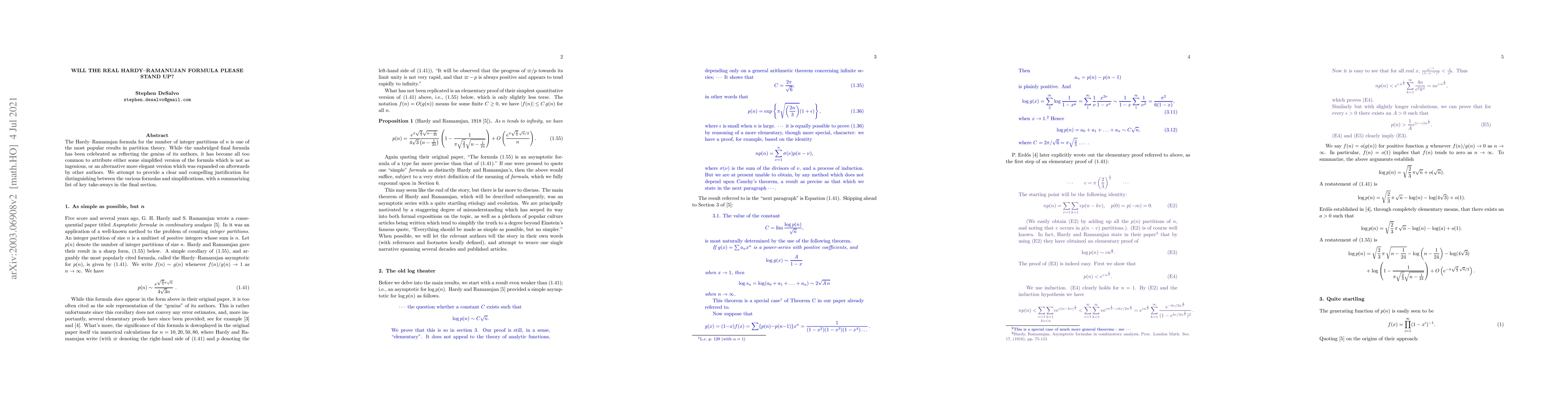 Researchers revisit the Hardy-Ramanujan formula for integer partitions of n, distinguishing between original formulas and simplifications, and provide a clear justification for their significance.