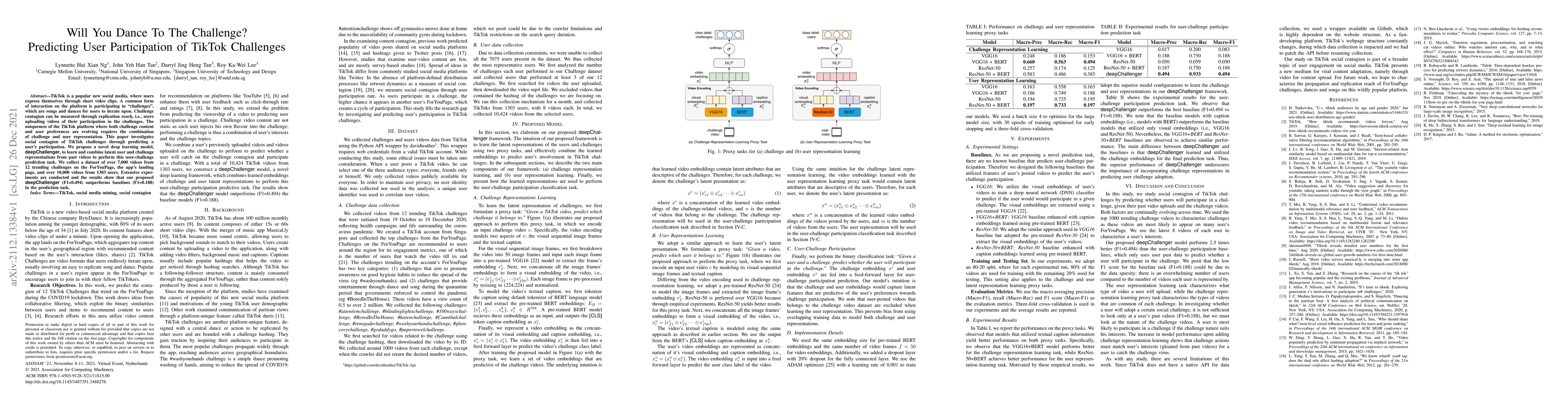 This paper proposes a deep learning model, deepChallenger, to predict user participation in TikTok challenges, combining evolving challenge and user preferences. The model outperforms baselines, achieving an F1 score of 0.494 compared to 0.188, demonstrating its effectiveness in predicting challenge contagion.