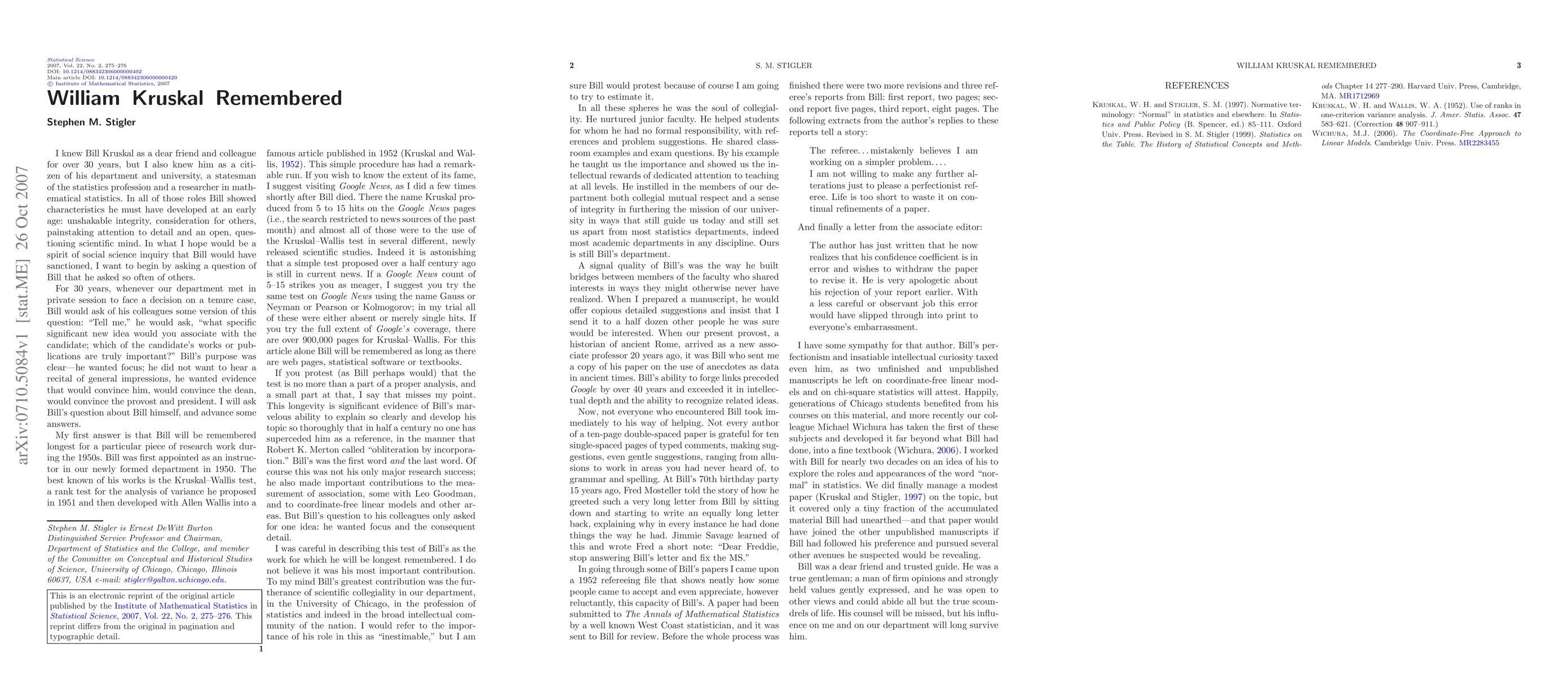 Discussion of ``The William Kruskal Legacy: 1919--2005'' by Stephen E. Fienberg, Stephen M. Stigler and Judith M. Tanur [arXiv:0710.5063]