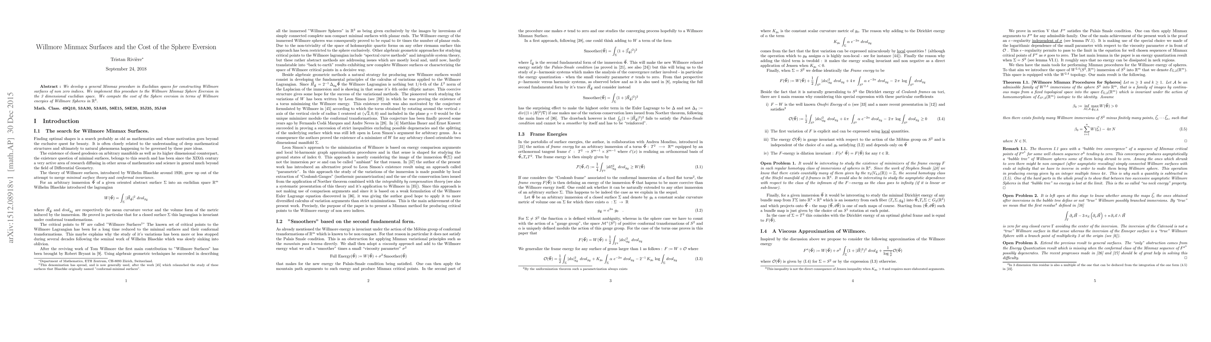 We develop a general Minmax procedure in Euclidian spaces for constructing Willmore surfaces of non zero indices. We implement this procedure to the Willmore Minmax Sphere Eversion in the 3 dimensional euclidian space. We compute the cost of the Sphere eversion in terms of Willmore energies of Willmore Spheres in ${\R}^3$