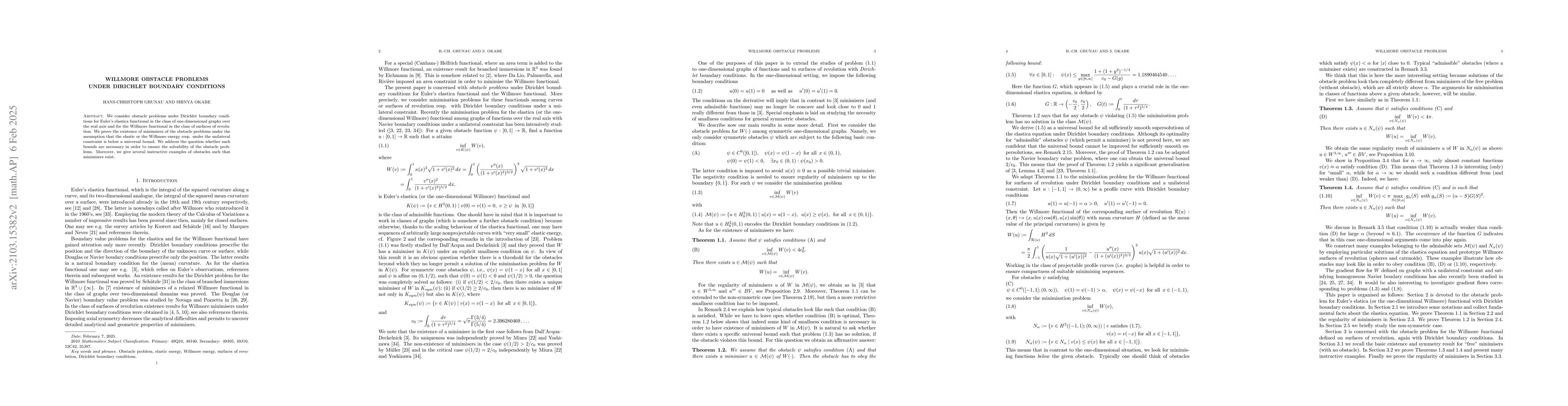 This paper investigates the existence of minimizers for Willmore obstacle problems in graphs and surfaces of revolution under Dirichlet boundary conditions, proving their existence when the Willmore energy is bounded. It also explores whether such energy bounds are essential for solvability.