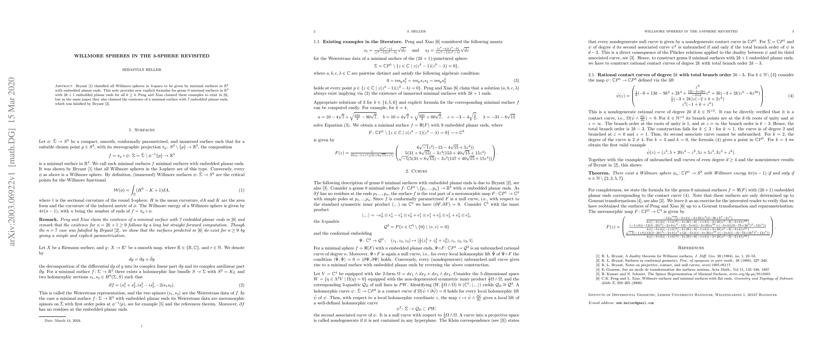 Bryant \cite{Bryant84} classified all Willmore spheres in $3$-space to be given by minimal surfaces in $\mathbb R^3$ with embedded planar ends. This note provides new explicit formulas for genus 0 minimal surfaces in $\mathbb R^3$ with $2k+1$ embedded planar ends for all $k\geq4.$ Peng and Xiao claimed these examples to exist in \cite{PengXiao2000}, but in the same paper they also claimed the existence of a minimal surface with 7 embedded planar ends, which was falsified by Bryant \cite{Bryant88}.