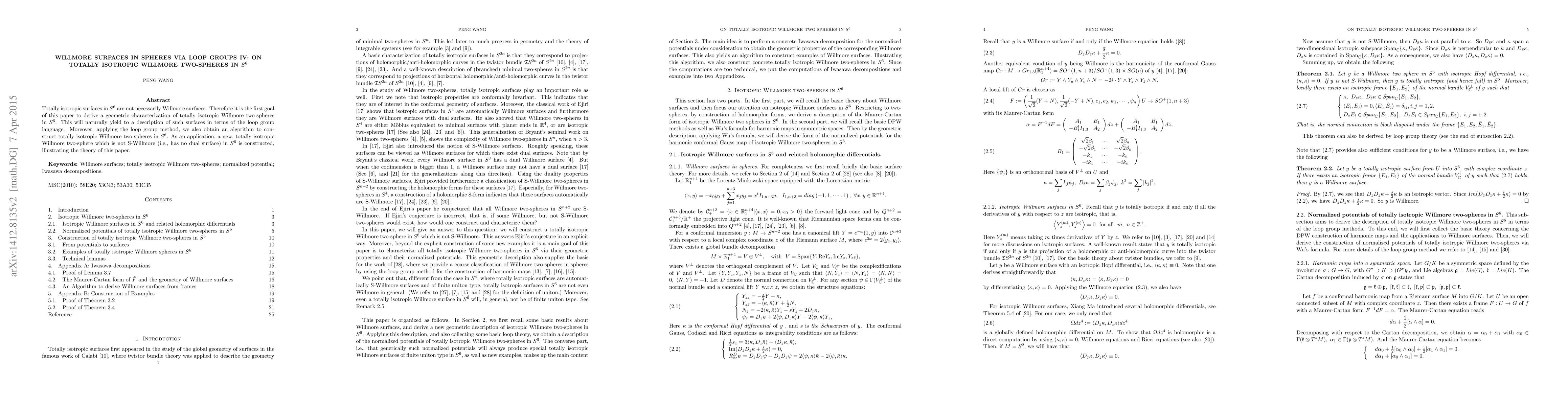 This paper characterizes totally isotropic Willmore two-spheres in $S^6$ geometrically and describes them using loop group methods. It also provides an algorithm for constructing such surfaces and presents a new example that is not S-Willmore, highlighting the theory's practical applications.