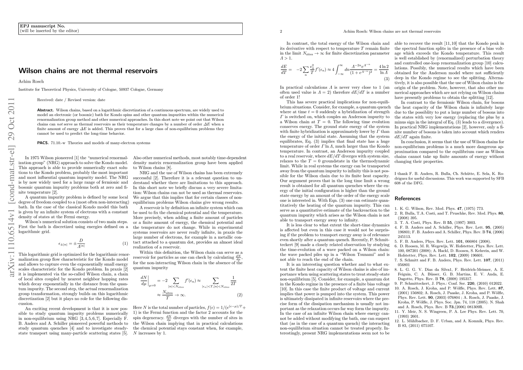 Wilson chains cannot serve as thermal reservoirs due to temperature changes that scale with added energy, limiting their use for predicting long-term behavior in non-equilibrium problems.