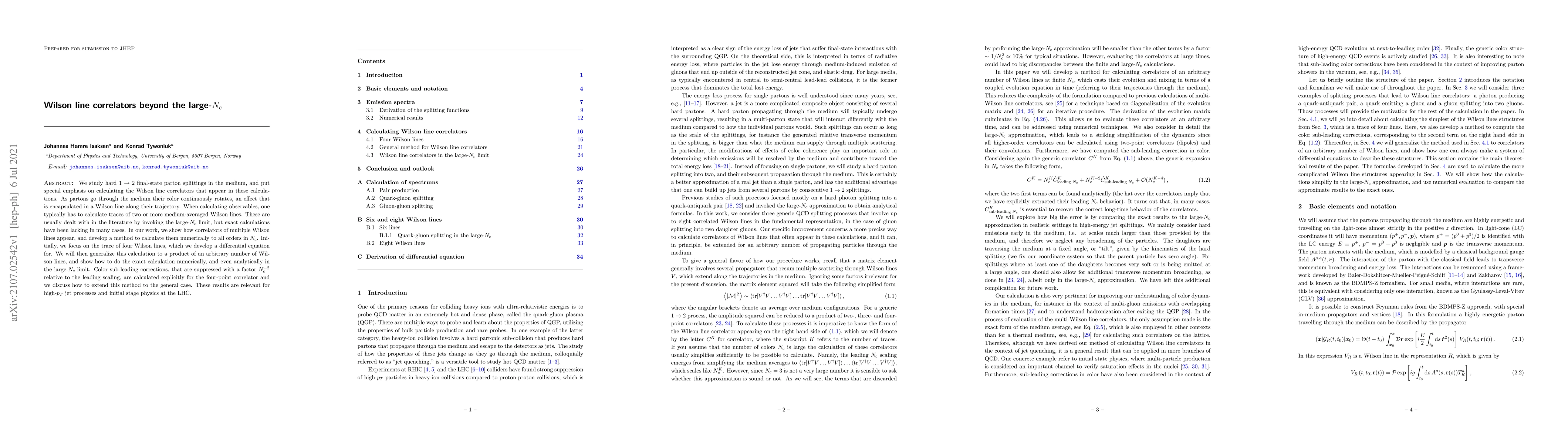 We study hard $1\to 2$ final-state parton splittings in the medium, and put special emphasis on calculating the Wilson line correlators that appear in these calculations. As partons go through the medium their color continuously rotates, an effect that is encapsulated in a Wilson line along their trajectory. When calculating observables, one typically has to calculate traces of two or more medium-averaged Wilson lines. These are usually dealt with in the literature by invoking the large-$N_c$ limit, but exact calculations have been lacking in many cases. In our work, we show how correlators of multiple Wilson lines appear, and develop a method to calculate them numerically to all orders in $N_c$. Initially, we focus on the trace of four Wilson lines, which we develop a differential equation for. We will then generalize this calculation to a product of an arbitrary number of Wilson lines, and show how to do the exact calculation numerically, and even analytically in the large-$N_c$ limit. Color sub-leading corrections, that are suppressed with a factor $N_c^{-2}$ relative to the leading scaling, are calculated explicitly for the four-point correlator and we discuss how to extend this method to the general case. These results are relevant for high-$p_T$ jet processes and initial stage physics at the LHC.