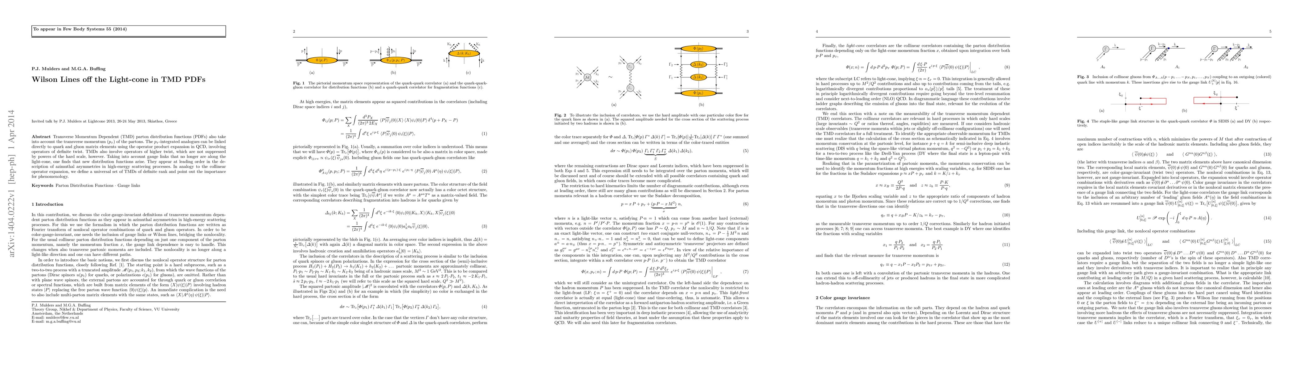 This paper explores the role of Wilson lines in Transverse Momentum Dependent (TMD) parton distribution functions (PDFs) that account for parton transverse momentum. It introduces new distribution functions arising from gauge links not aligned with the light-cone, significant for describing azimuthal asymmetries in high-energy scattering processes.