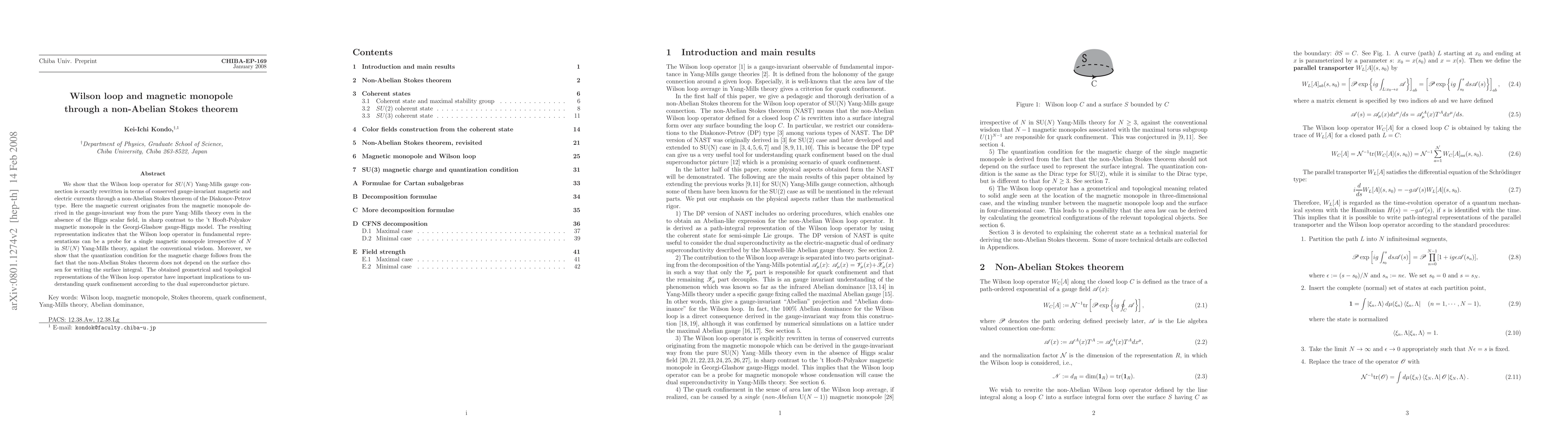 This paper demonstrates a non-Abelian Stokes theorem rewriting the SU(N) Yang-Mills gauge theory's Wilson loop operator in terms of conserved magnetic and electric currents, revealing a gauge-invariant magnetic monopole independent of Higgs fields. This new representation suggests the Wilson loop operator can detect a single magnetic monopole in any SU(N) theory, challenging conventional views.