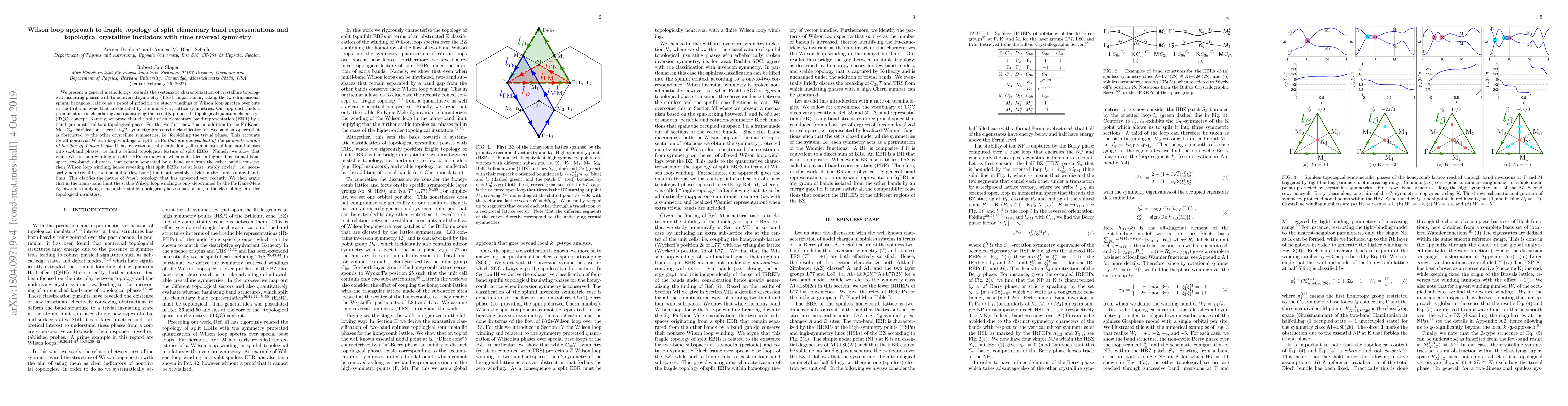We present a general methodology towards the systematic characterization of crystalline topological insulating phases with time reversal symmetry (TRS).~In particular, taking the two-dimensional spinful hexagonal lattice as a proof of principle we study windings of Wilson loop spectra over cuts in the Brillouin zone that are dictated by the underlying lattice symmetries.~Our approach finds a prominent use in elucidating and quantifying the recently proposed ``topological quantum chemistry" (TQC) concept.~Namely, we prove that the split of an elementary band representation (EBR) by a band gap must lead to a topological phase.~For this we first show that in addition to the Fu-Kane-Mele $\mathbb{Z}_2$ classification, there is $C_2\mathcal{T}$-symmetry protected $\mathbb{Z}$ classification of two-band subspaces that is obstructed by the other crystalline symmetries, i.e.~forbidding the trivial phase. This accounts for all nontrivial Wilson loop windings of split EBRs \textit{that are independent of the parameterization of the flow of Wilson loops}.~Then, we show that while Wilson loop winding of split EBRs can unwind when embedded in higher-dimensional band space, two-band subspaces that remain separated by a band gap from the other bands conserve their Wilson loop winding, hence revealing that split EBRs are at least "stably trivial", i.e. necessarily non-trivial in the non-stable (few-band) limit but possibly trivial in the stable (many-band) limit.~This clarifies the nature of \textit{fragile} topology that has appeared very recently.~We then argue that in the many-band limit the stable Wilson loop winding is only determined by the Fu-Kane-Mele $\mathbb{Z}_2$ invariant implying that further stable topological phases must belong to the class of higher-order topological insulators.