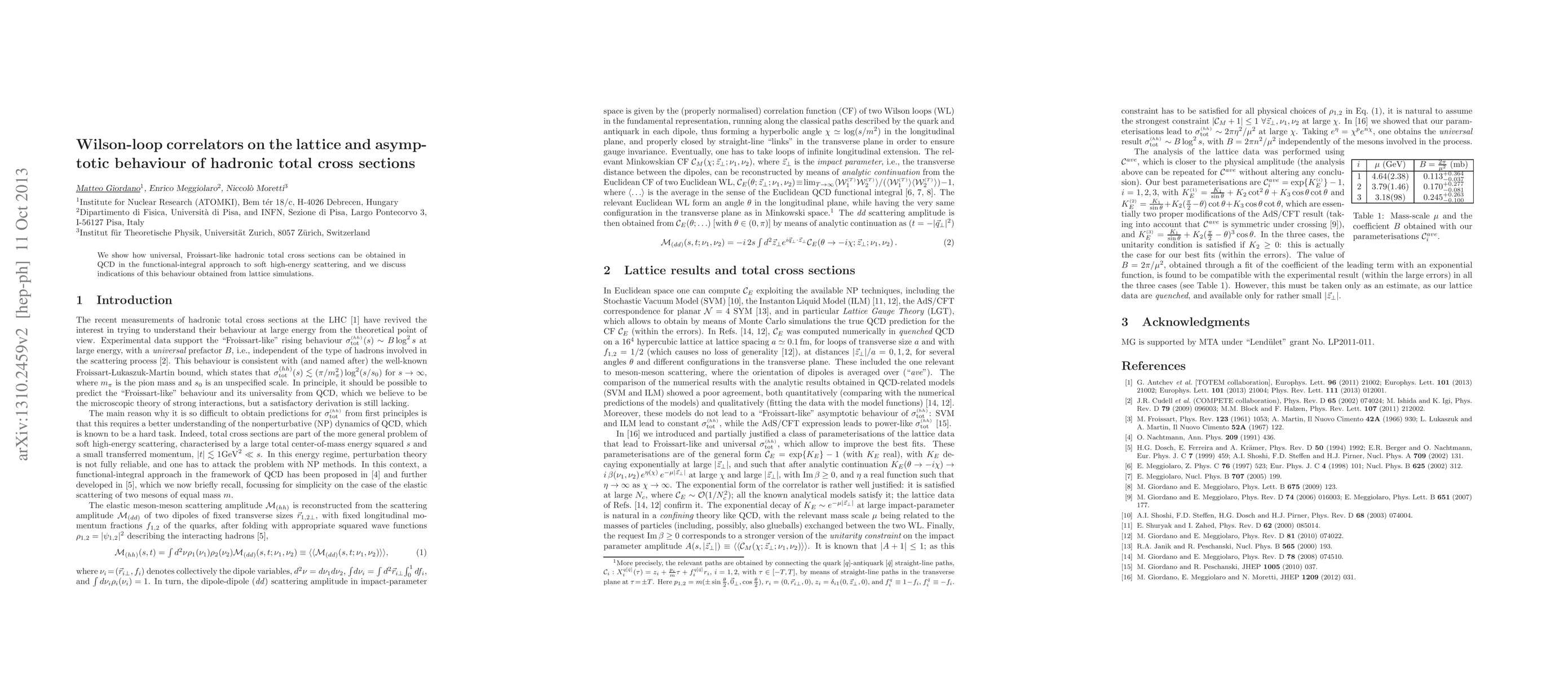 We show how universal, Froissart-like hadronic total cross sections can be obtained in QCD in the functional-integral approach to soft high-energy scattering, and we discuss indications of this behaviour obtained from lattice simulations.