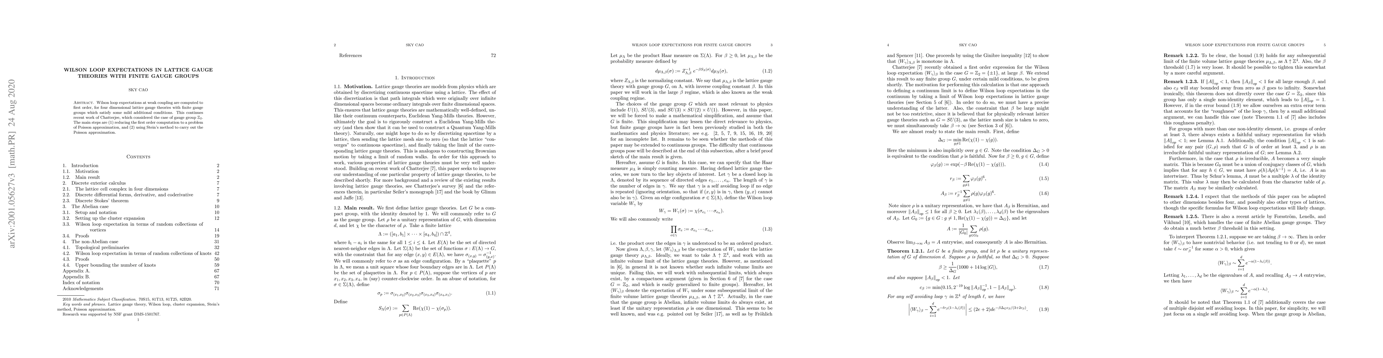 Wilson loop expectations at weak coupling are computed to first order, for four dimensional lattice gauge theories with finite gauge groups which satisfy some mild additional conditions. This continues recent work of Chatterjee, which considered the case of gauge group $\mathbb{Z}_2$. The main steps are (1) reducing the first order computation to a problem of Poisson approximation, and (2) using Stein's method to carry out the Poisson approximation.