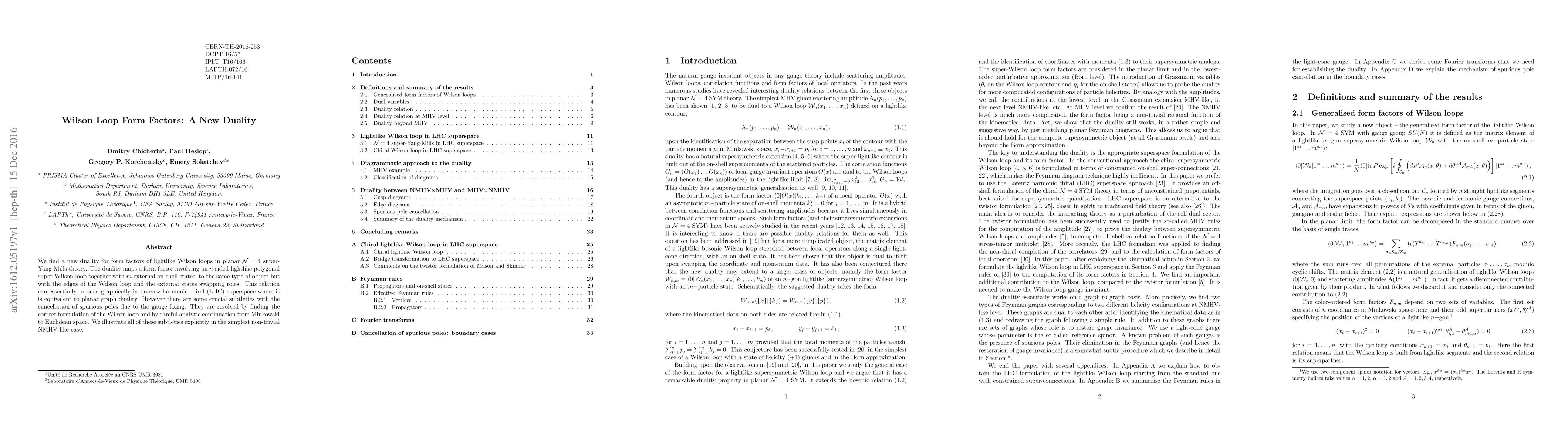 The paper introduces a novel duality relation in LHC superspace, linking form factors of lightlike Wilson loops to their dual configurations, with detailed resolution of subtleties related to gauge fixing and spurious poles.