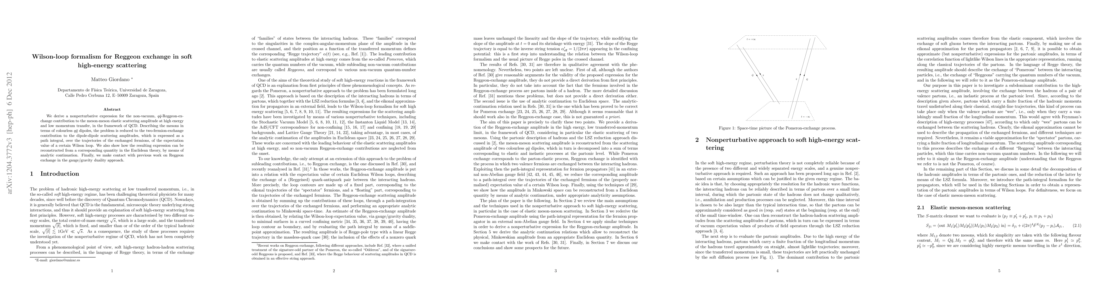 This paper derives a nonperturbative expression for meson-meson scattering in high-energy QCD, framing the problem in terms of colourless qqbar dipoles and using a Wilson-loop formalism for Reggeon exchange. It also connects the results to Euclidean theory via analytic continuation and relates findings to previous studies using gauge/gravity duality.
