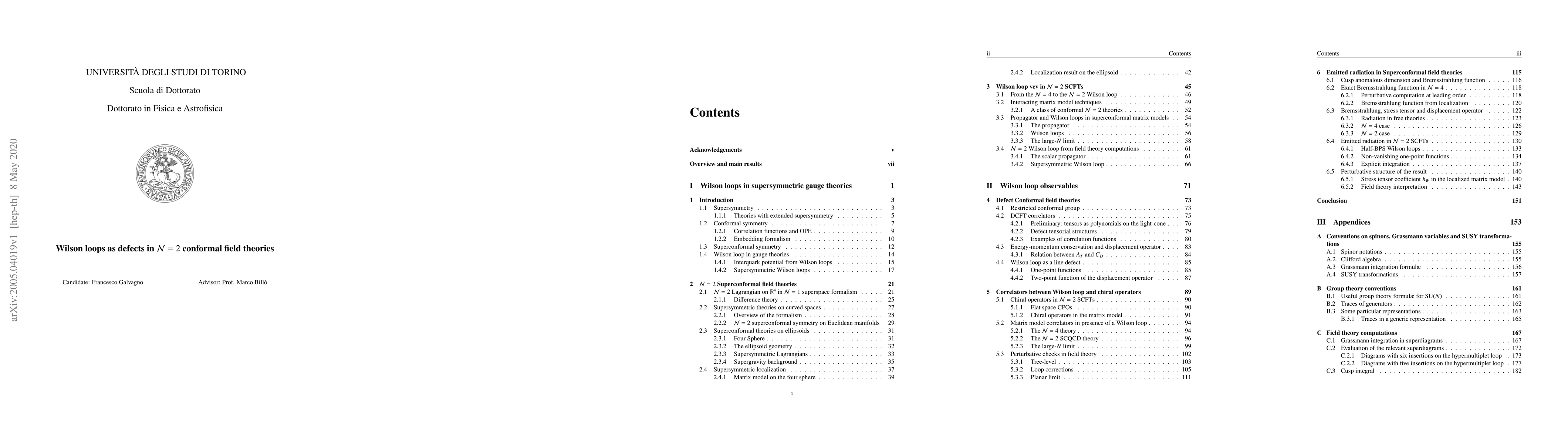 In this thesis we consider four dimensional N=2 superconformal field theories, in presence of line defects such as Wilson loops. In this set up, using supersymmetric localization, we compute many observables, such as the vacuum expectation value of the Wilson loop, correlation functions with chiral operators and the emitted radiation of the charged particle moving along the Wilson loop trajectory. These results are achieved by exploiting the localized matrix model on a four sphere, and checked against a perturbative computation on the flat space in N=1 superspace formalism, up to four loops in perturbation theory.