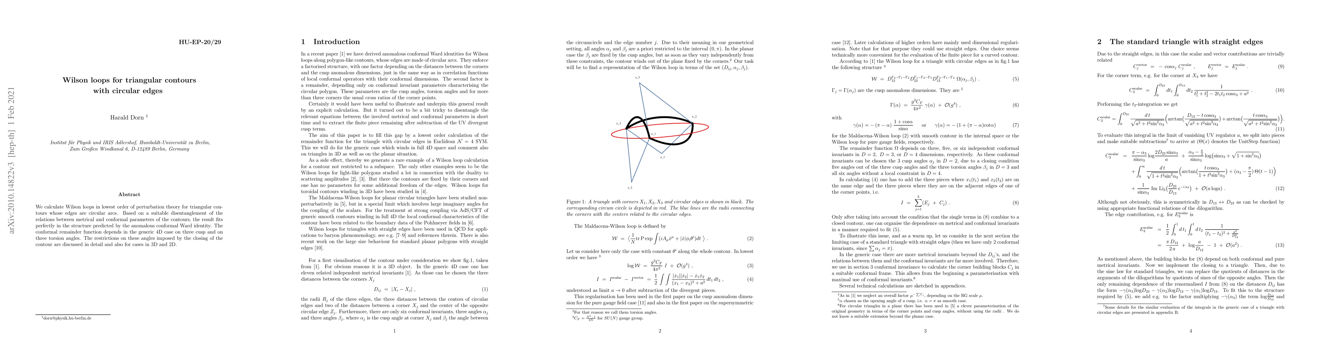 Researchers calculate Wilson loops for triangular contours with circular edges, confirming a prediction from the anomalous conformal Ward identity, which involves cusp and torsion angles.