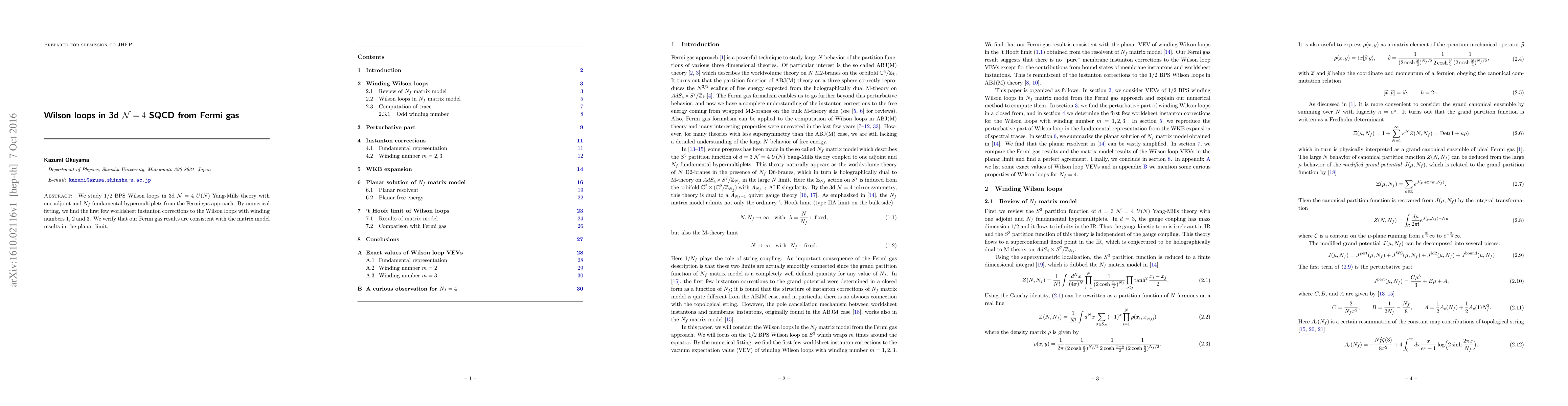 This paper investigates 1/2 BPS Wilson loops in 3d $\mathcal{N}=4$ SQCD using the Fermi gas approach, determining worldsheet instanton corrections for winding numbers 1, 2, and 3 through numerical fitting. The results align with matrix model predictions in the planar limit.