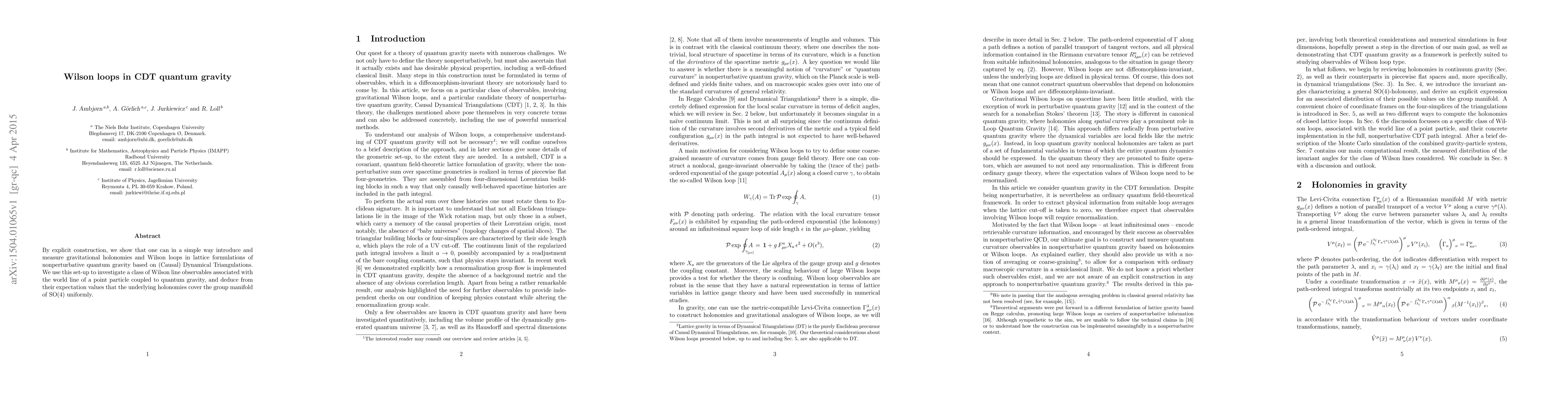 The research explicitly constructs gravitational holonomies and Wilson loops in lattice formulations of nonperturbative quantum gravity based on Causal Dynamical Triangulations (CDT).