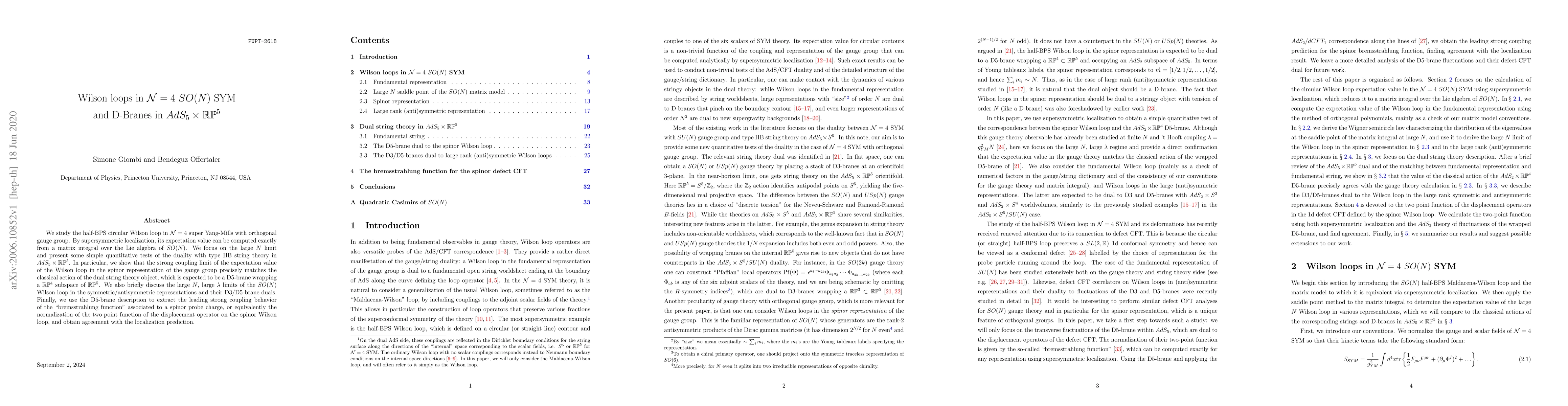 We study the half-BPS circular Wilson loop in ${\cal N}=4$ super Yang-Mills with orthogonal gauge group. By supersymmetric localization, its expectation value can be computed exactly from a matrix integral over the Lie algebra of $SO(N)$. We focus on the large $N$ limit and present some simple quantitative tests of the duality with type IIB string theory in $AdS_5\times \mathbb{RP}^5$. In particular, we show that the strong coupling limit of the expectation value of the Wilson loop in the spinor representation of the gauge group precisely matches the classical action of the dual string theory object, which is expected to be a D5-brane wrapping a $\mathbb{RP}^4$ subspace of $\mathbb{RP}^5$. We also briefly discuss the large $N$, large $\lambda$ limits of the $SO(N)$ Wilson loop in the symmetric/antisymmetric representations and their D3/D5-brane duals. Finally, we use the D5-brane description to extract the leading strong coupling behavior of the "bremsstrahlung function" associated to a spinor probe charge, or equivalently the normalization of the two-point function of the displacement operator on the spinor Wilson loop, and obtain agreement with the localization prediction.