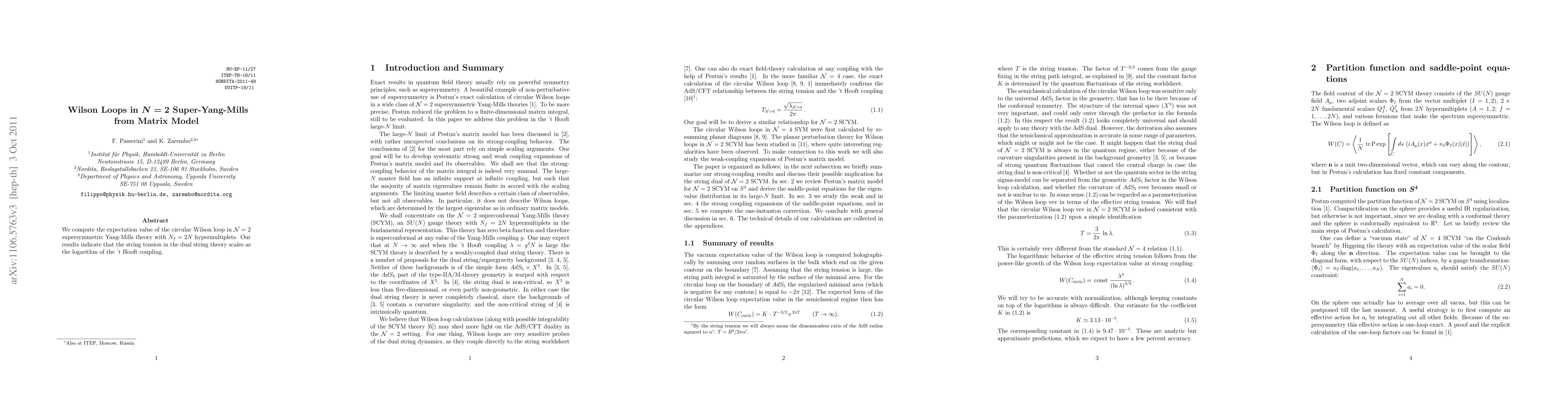 Researchers computed the expectation value of a circular Wilson loop in N=2 supersymmetric Yang-Mills theory, finding that string tension scales logarithmically with the 't Hooft coupling.