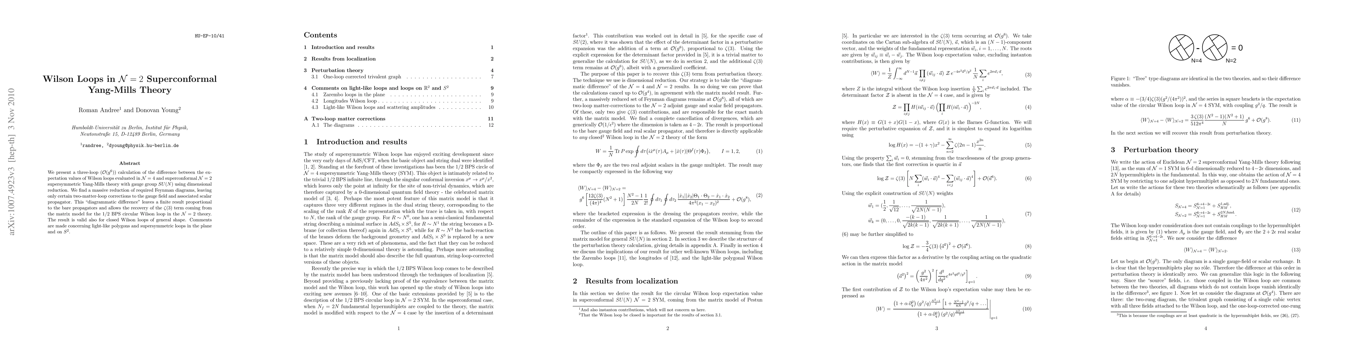 We present a three-loop O(g^6) calculation of the difference between the expectation values of Wilson loops evaluated in N=4 and superconformal N=2 supersymmetric Yang-Mills theory with gauge group SU(N) using dimensional reduction. We find a massive reduction of required Feynman diagrams, leaving only certain two-matter-loop corrections to the gauge field and associated scalar propagator. This "diagrammatic difference" leaves a finite result proportional to the bare propagators and allows the recovery of the zeta(3) term coming from the matrix model for the 1/2 BPS circular Wilson loop in the N=2 theory. The result is valid also for closed Wilson loops of general shape. Comments are made concerning light-like polygons and supersymmetric loops in the plane and on S^2.