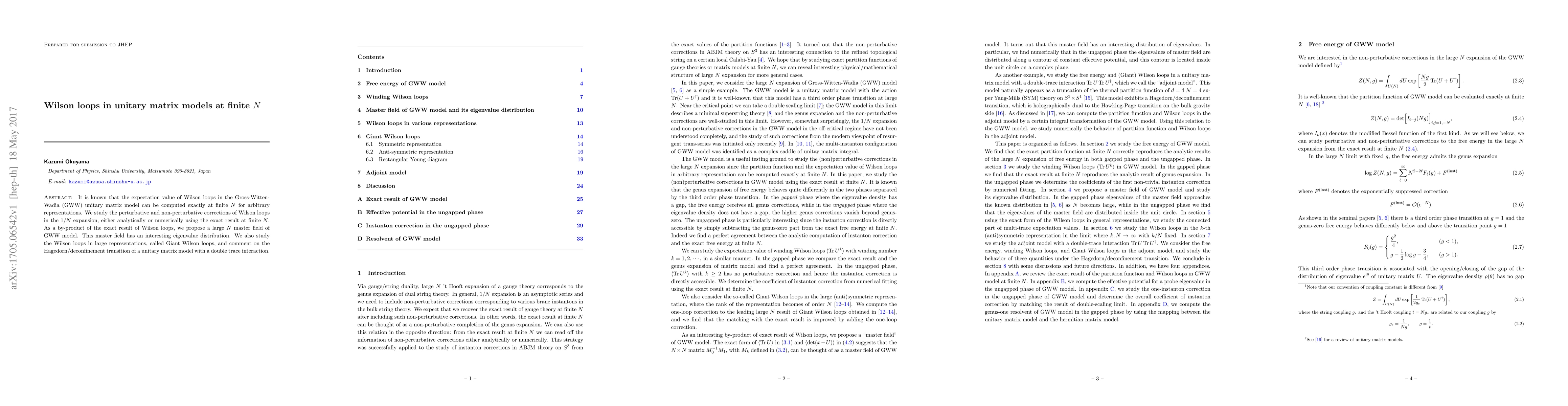 The paper computes the exact expectation value of Wilson loops in the Gross-Witten-Wadia unitary matrix model at finite $N$ and explores perturbative and non-perturbative corrections. It introduces a large $N$ master field with an intriguing eigenvalue distribution and investigates Giant Wilson loops and the Hagedorn/deconfinement transition in the context of double trace interactions.