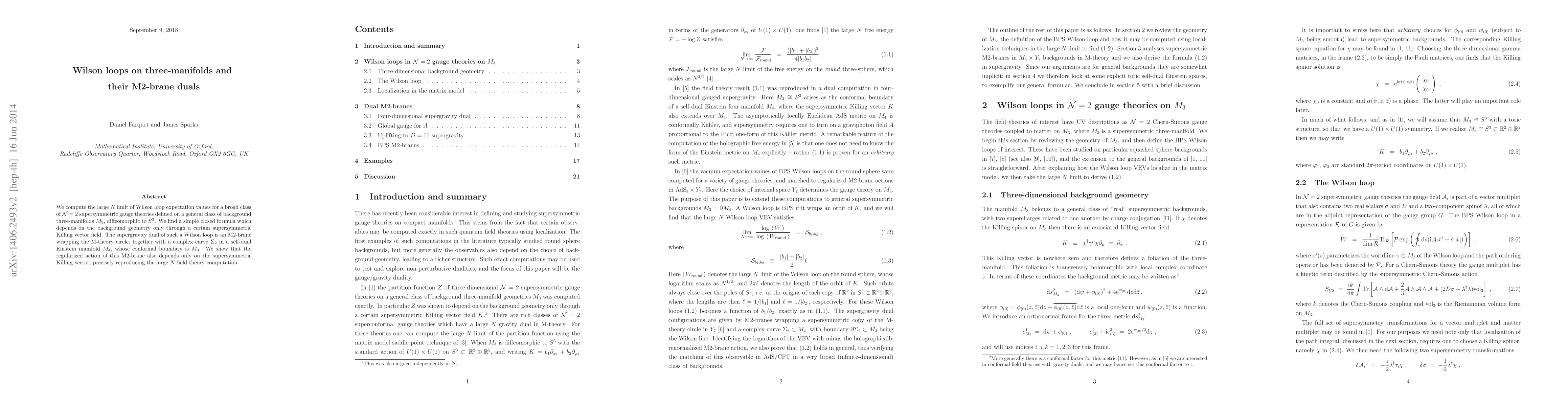 We compute the large N limit of Wilson loop expectation values for a broad class of N=2 supersymmetric gauge theories defined on a general class of background three-manifolds M_3, diffeomorphic to S^3. We find a simple closed formula which depends on the background geometry only through a certain supersymmetric Killing vector field. The supergravity dual of such a Wilson loop is an M2-brane wrapping the M-theory circle, together with a complex curve in a self-dual Einstein manifold M_4, whose conformal boundary is M_3. We show that the regularized action of this M2-brane also depends only on the supersymmetric Killing vector, precisely reproducing the large N field theory computation.