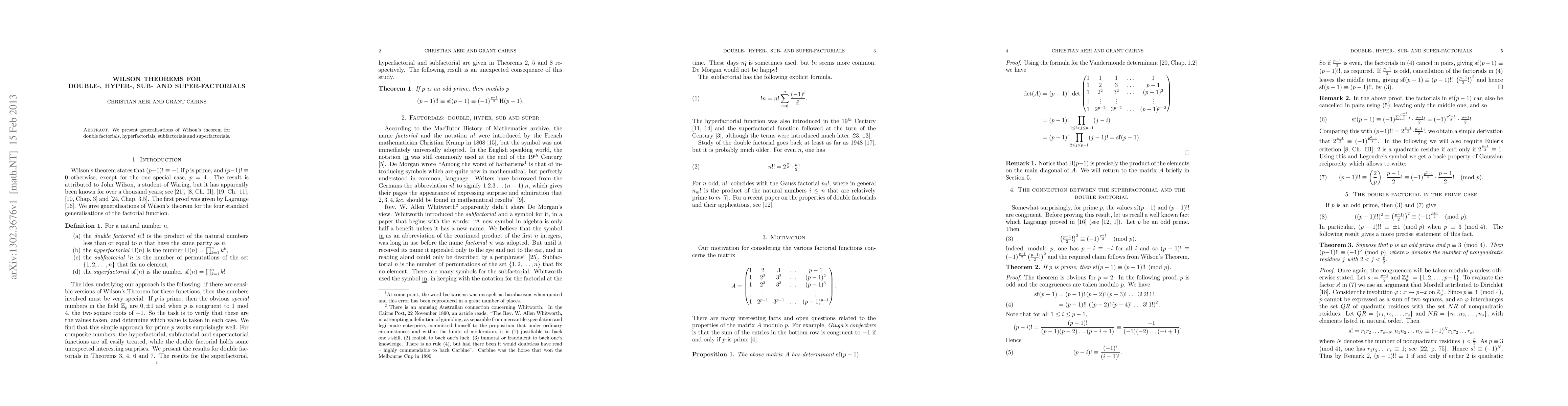 We present generalisations of Wilson's theorem for double factorials, hyperfactorials, subfactorials and superfactorials.