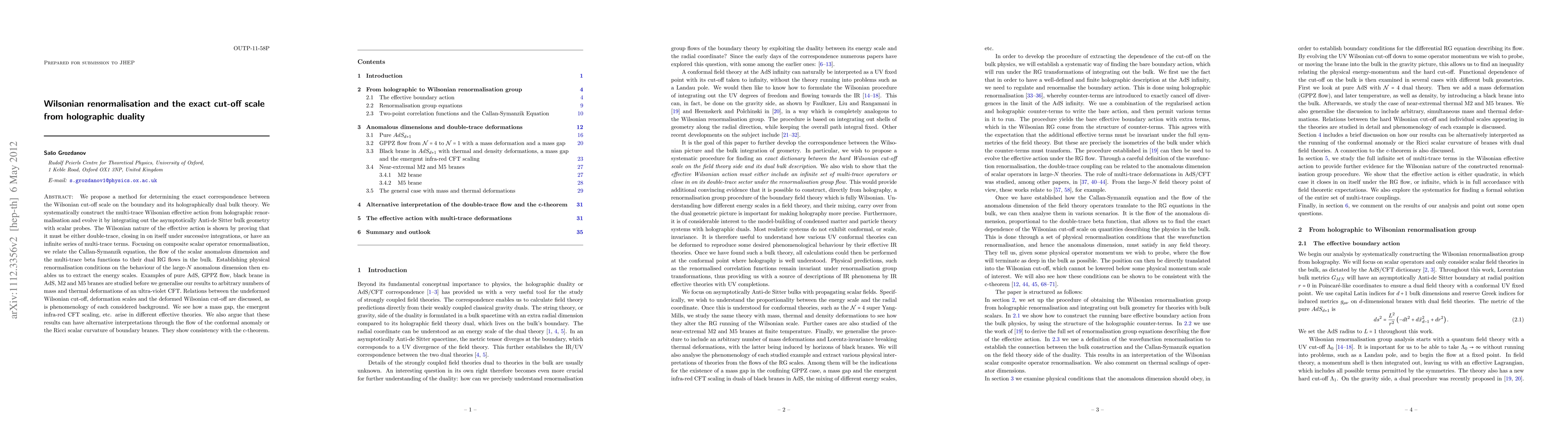 This paper proposes a method to determine the exact correspondence between the Wilsonian cut-off scale on the boundary and its holographic dual bulk theory, using holographic renormalisation and the evolution of multi-trace effective actions. The study relates composite scalar operator renormalisation and the Callan-Symanzik equation to bulk renormalization group flows, demonstrating consistency with the c-theorem and exploring various AdS backgrounds and deformations.