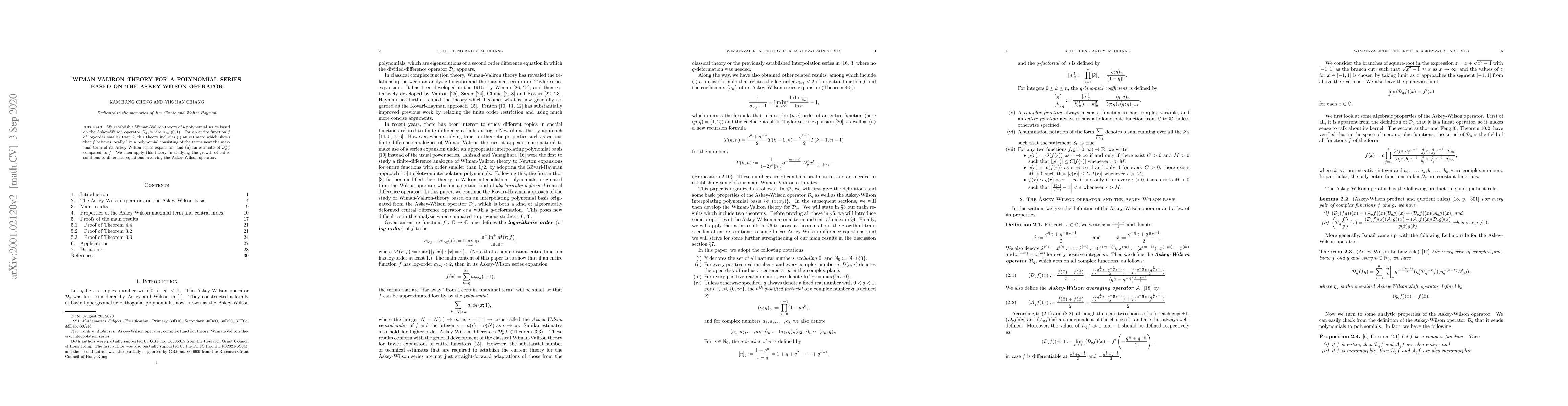 We establish a Wiman-Valiron theory of a polynomial series based on the Askey-Wilson operator $\mathcal{D}_q$, where $q\in(0,1)$. For an entire function $f$ of log-order smaller than $2$, this theory includes (i) an estimate which shows that $f$ behaves locally like a polynomial consisting of the terms near the maximal term of its Askey-Wilson series expansion, and (ii) an estimate of $\mathcal{D}_q^n f$ compared to $f$. We then apply this theory in studying the growth of entire solutions to difference equations involving the Askey-Wilson operator.