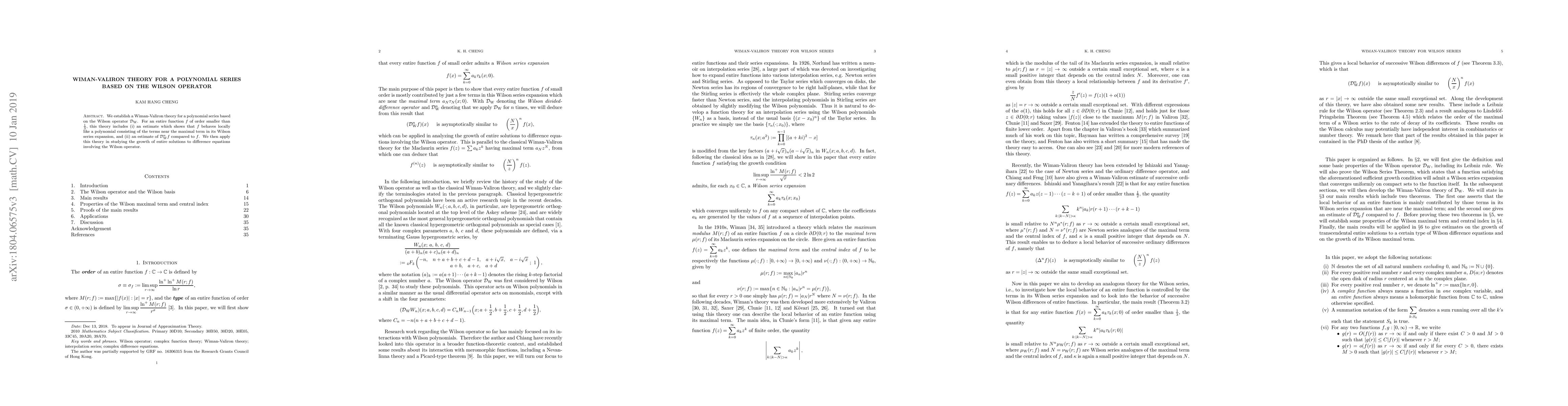 This paper establishes a Wiman-Valiron theory for polynomial series based on the Wilson operator $\mathcal{D}_\mathrm{W}$, providing estimates on the behavior of entire functions of low order and applying these to study the growth of entire solutions to difference equations involving the Wilson operator.