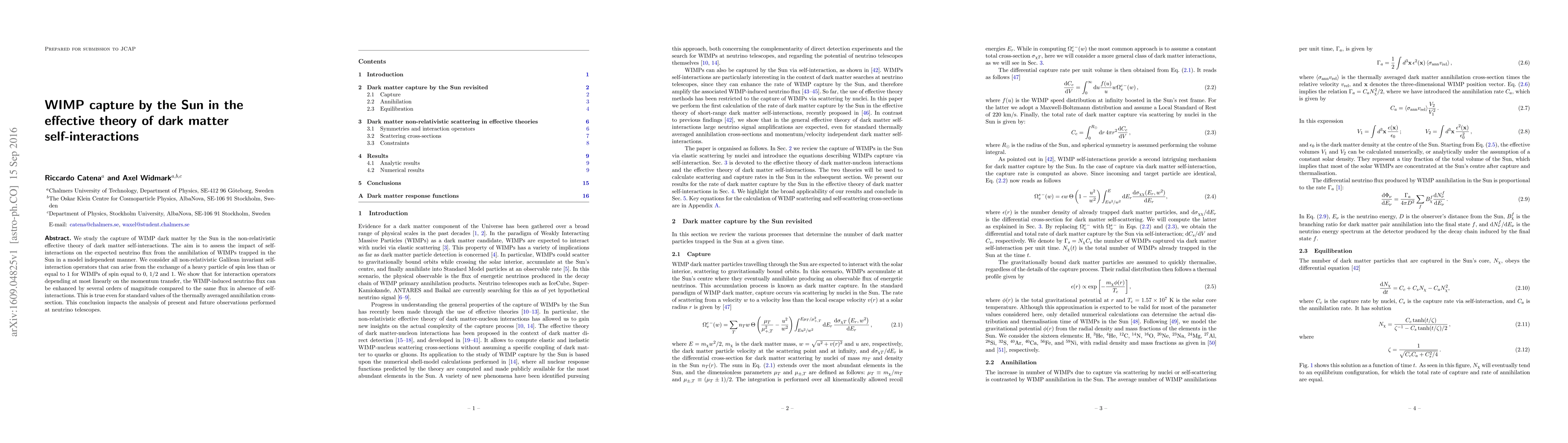 This paper investigates the capture of WIMP dark matter by the Sun, considering its self-interactions within the non-relativistic effective theory. The study finds that self-interactions can significantly enhance the WIMP-induced neutrino flux, impacting the interpretation of neutrino telescope observations.