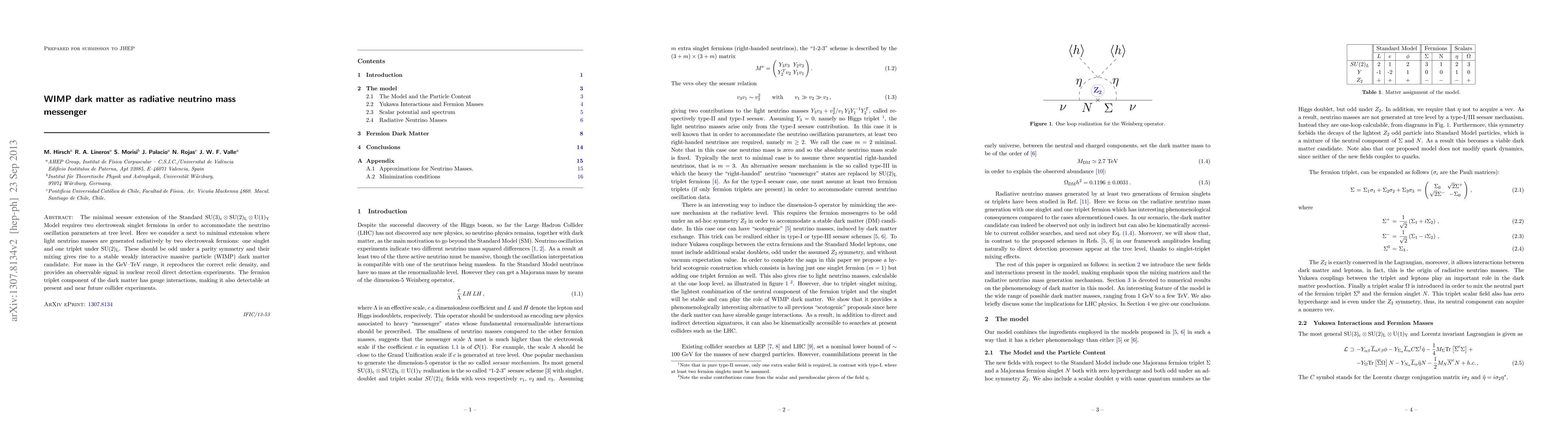 This paper explores a next-to-minimal extension of the Standard Model that generates light neutrino masses radiatively through two electroweak fermions, predicting a stable WIMP dark matter candidate in the GeV-TeV range. This candidate can account for the correct relic density and is detectable in direct detection and collider experiments.