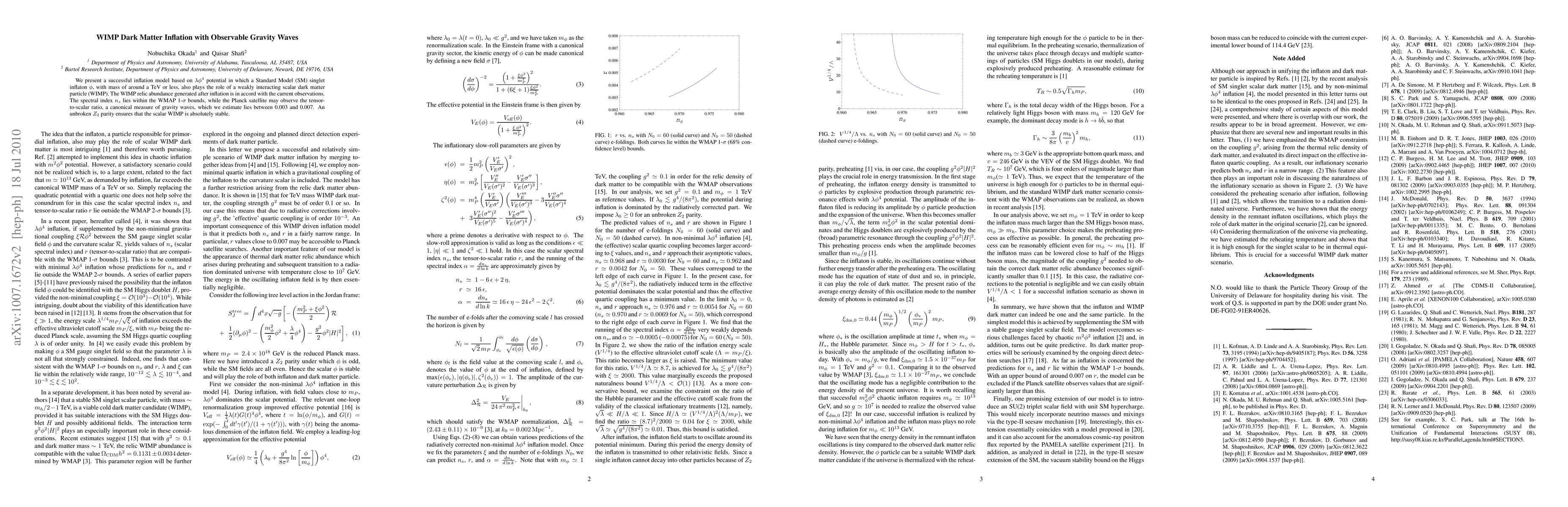 This paper proposes an inflation model where a $\lambda \phi^4$ potential drives inflation, with a Standard Model singlet inflaton $\phi$ also serving as a WIMP dark matter particle. The model predicts a tensor-to-scalar ratio observable by Planck, potentially generating detectable gravity waves.