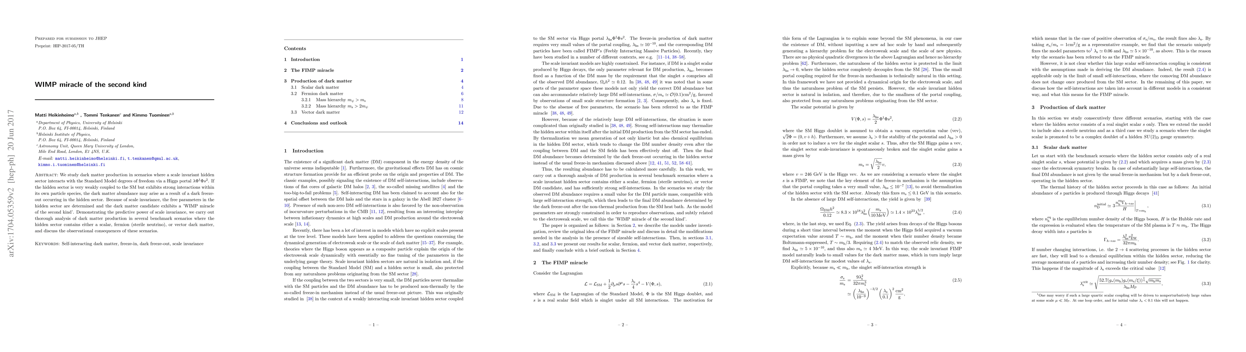 The paper presents a detailed analysis of dark matter production in scale-invariant hidden sectors interacting via a Higgs portal, identifying the 'WIMP miracle of the second kind' and providing benchmarks for observational consequences.