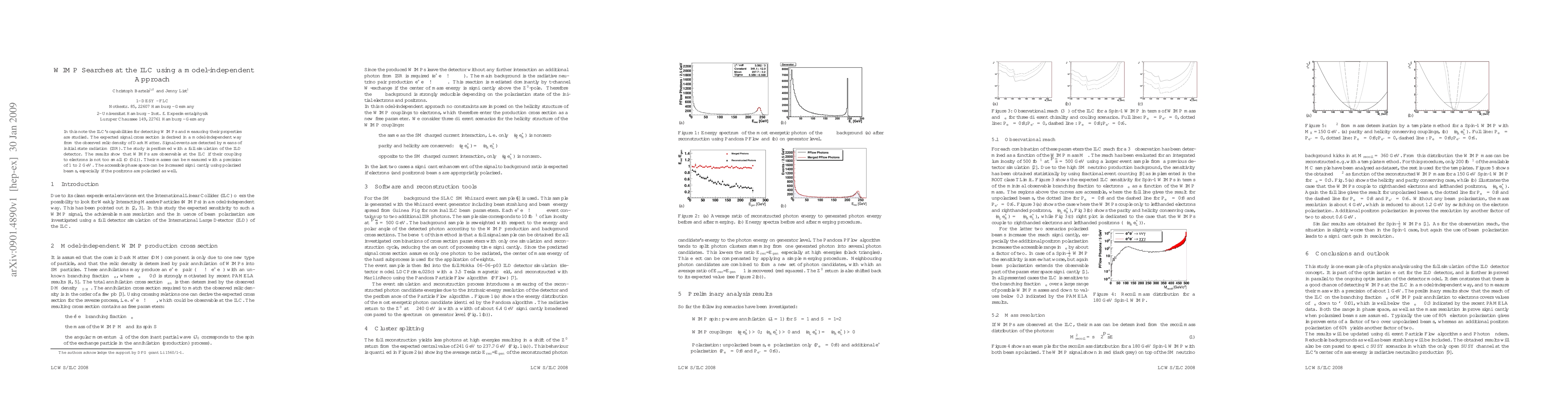 This paper investigates the International Linear Collider's (ILC) potential to detect Weakly Interacting Massive Particles (WIMPs) using a model-independent approach based on Dark Matter's relic density. The study concludes that WIMPs can be observed if their coupling to electrons is significant, with masses measurable to within 1 to 2 GeV, and the use of polarized beams enhances the accessible phase space.