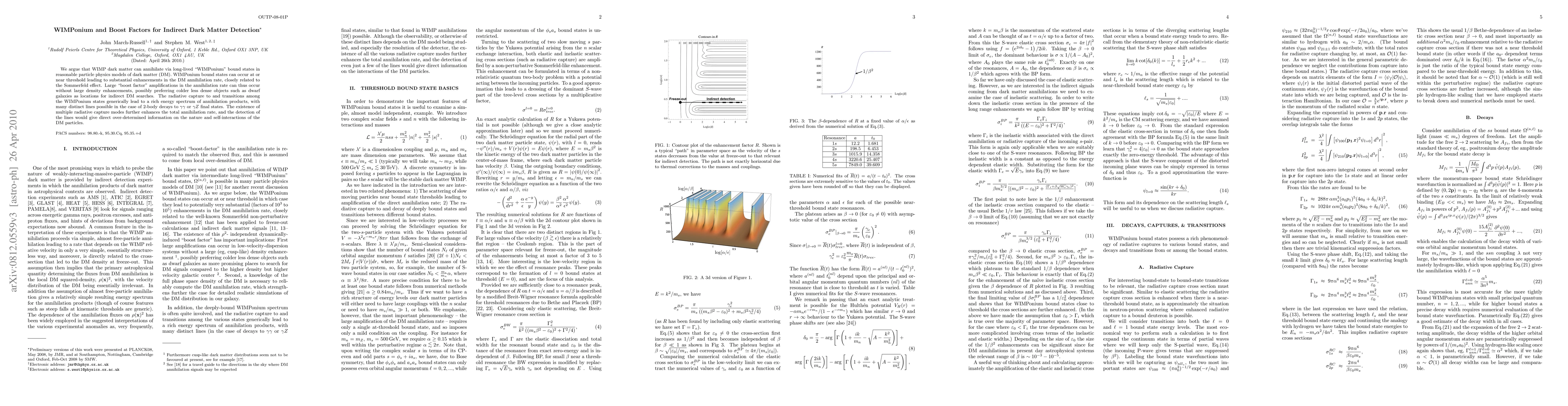 We argue that WIMP dark matter can annihilate via long-lived "WIMPonium" bound states in reasonable particle physics models of dark matter (DM). WIMPonium bound states can occur at or near threshold leading to substantial enhancements in the DM annihilation rate, closely related to the Sommerfeld effect. Large "boost factor" amplifications in the annihilation rate can thus occur without large density enhancements, possibly preferring colder less dense objects such as dwarf galaxies as locations for indirect DM searches. The radiative capture to and transitions among the WIMPonium states generically lead to a rich energy spectrum of annihilation products, with many distinct lines possible in the case of 2-body decays to $\gamma\gamma$ or $\gamma Z$ final states. The existence of multiple radiative capture modes further enhances the total annihilation rate, and the detection of the lines would give direct over-determined information on the nature and self-interactions of the DM particles.