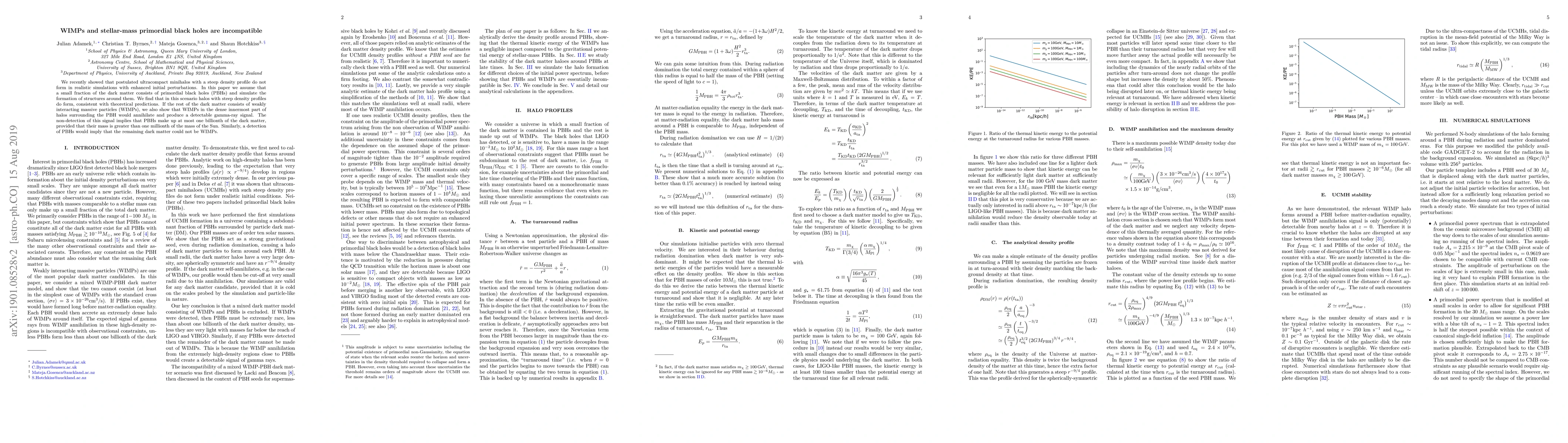 This paper demonstrates that the coexistence of weakly interacting massive particles (WIMPs) and stellar-mass primordial black holes (PBHs) as dark matter components is unlikely. The non-detection of gamma-ray signals from WIMP annihilation around PBHs suggests that PBHs cannot account for more than one billionth of the dark matter, while a PBH detection would exclude WIMPs as the primary dark matter constituent.