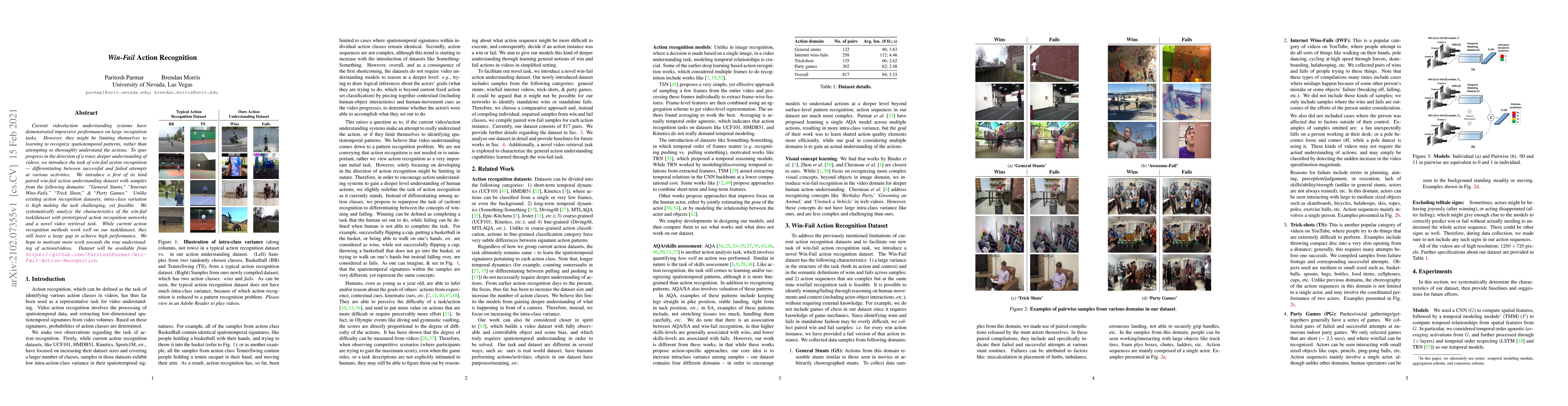 This paper introduces the novel win-fail action recognition task to enhance the true understanding of video actions by distinguishing successful from failed attempts. A new paired dataset across various domains is presented, highlighting high intra-class variation and challenging existing action recognition methods. The dataset aims to spur further research towards deeper video comprehension.
