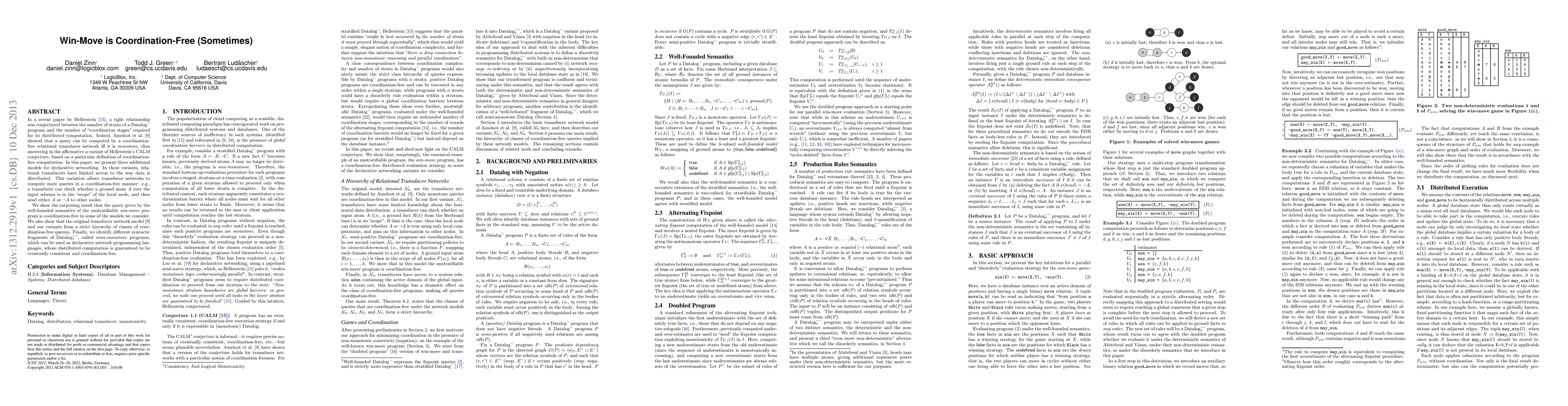 In a recent paper by Hellerstein [15], a tight relationship was conjectured between the number of strata of a Datalog${}^\neg$ program and the number of "coordination stages" required for its distributed computation. Indeed, Ameloot et al. [9] showed that a query can be computed by a coordination-free relational transducer network iff it is monotone, thus answering in the affirmative a variant of Hellerstein's CALM conjecture, based on a particular definition of coordination-free computation. In this paper, we present three additional models for declarative networking. In these variants, relational transducers have limited access to the way data is distributed. This variation allows transducer networks to compute more queries in a coordination-free manner: e.g., a transducer can check whether a ground atom $A$ over the input schema is in the "scope" of the local node, and then send either $A$ or $\neg A$ to other nodes. We show the surprising result that the query given by the well-founded semantics of the unstratifiable win-move program is coordination-free in some of the models we consider. We also show that the original transducer network model [9] and our variants form a strict hierarchy of classes of coordination-free queries. Finally, we identify different syntactic fragments of Datalog${}^{\neg\neg}_{\forall}$, called semi-monotone programs, which can be used as declarative network programming languages, whose distributed computation is guaranteed to be eventually consistent and coordination-free.