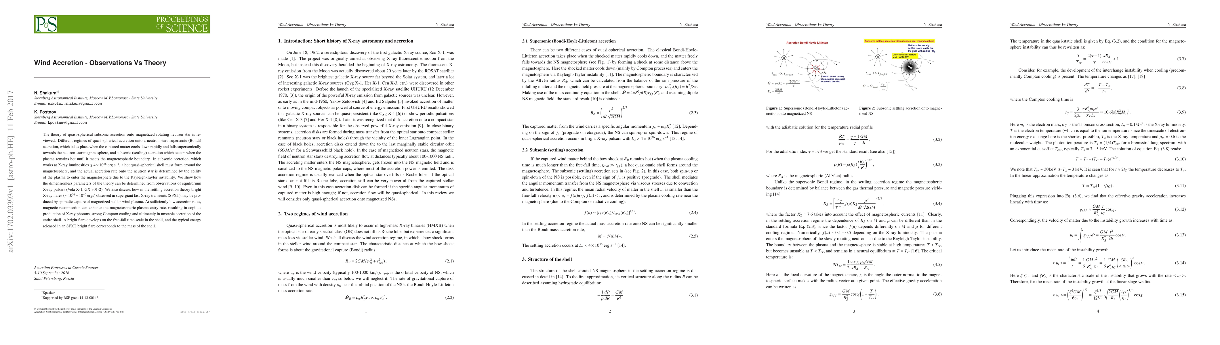The theory of quasi-spherical subsonic accretion onto magnetized rotating neutron star is reviewed. Different regimes of quasi-spherical accretion onto a neutron star: supersonic (Bondi) accretion, which takes place when the captured matter cools down rapidly and falls supersonically towards the neutron-star magnetosphere, and subsonic (settling) accretion which occurs when the plasma remains hot until it meets the magnetospheric boundary. In subsonic accretion, which works at X-ray luminosities $\lesssim 4\times 10^{36}$~erg~s$^{-1}$, a hot quasi-spherical shell must form around the magnetosphere, and the actual accretion rate onto the neutron star is determined by the ability of the plasma to enter the magnetosphere due to the Rayleigh-Taylor instability. We show how the dimensionless parameters of the theory can be determined from observations of equilibrium X-ray pulsars (Vela X-1, GX 301-2). We also discuss how in the settling accretion theory bright X-ray flares ($\sim 10^{38}-10^{40}$~ergs) observed in supergiant fast X-ray transients (SFXT) may be produced by sporadic capture of magnetized stellar-wind plasma. At sufficiently low accretion rates, magnetic reconnection can enhance the magnetospheric plasma entry rate, resulting in copious production of X-ray photons, strong Compton cooling and ultimately in unstable accretion of the entire shell. A bright flare develops on the free-fall time scale in the shell, and the typical energy released in an SFXT bright flare corresponds to the mass of the shell.