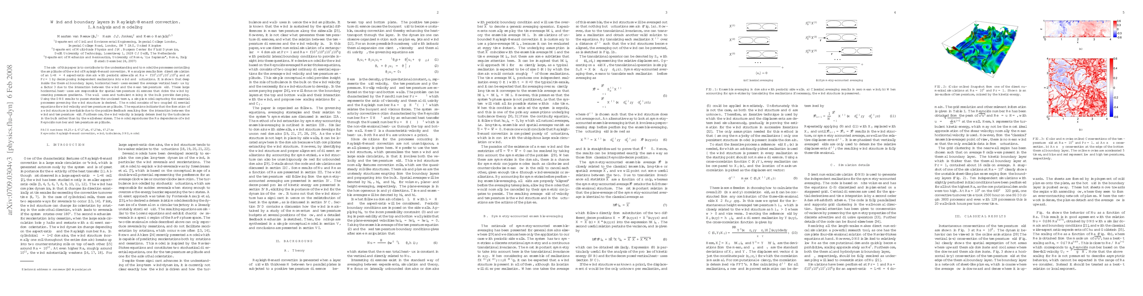 The aim of this paper is to contribute to the understanding and to model the processes controlling the amplitude of the wind of Rayleigh-Benard convection. We analyze results from direct simulation of an L/H = 4 aspect-ratio domain with periodic sidewalls at Ra = 1e5; 1e6; 1e7; 1e8 and at Pr = 1 by decomposing independent realizations into wind and fluctuations. It is shown that deep inside the thermal boundary layer, horizontal heat-fuxes exceed the average vertical heat-fux by a factor 3 due to the interaction between the wind and the mean temperature field. These large horizontal heat-fluxes are responsible for spatial temperature differences that drive the wind by creating pressure gradients. The wall fluxes and turbulent mixing in the bulk provide damping. Using the DNS results to parameterise the unclosed terms, a simple model capturing the essential processes governing the wind structure is derived. The model consists of two coupled differential equations for wind velocity and temperature amplitude. The equations indicate that the formation of a wind structure is inevitable due to the positive feedback resulting from the interaction between the wind and temperature field. Furthermore, the wind velocity is largely determined by the turbulence in the bulk rather than by the wall-shear stress. The model reproduces the Ra dependence of wind Reynolds number and temperature amplitude.