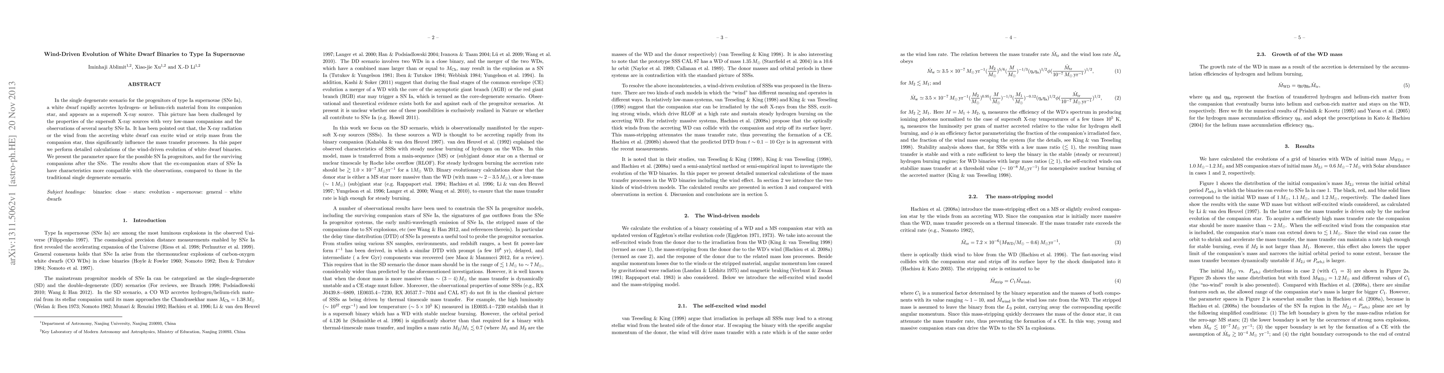 This paper investigates the wind-driven evolution of white dwarf binaries as a pathway for Type Ia supernovae, showing that the wind from the accreting white dwarf can strip mass from the companion star, leading to progenitor characteristics more consistent with observed supernovae compared to traditional models.
