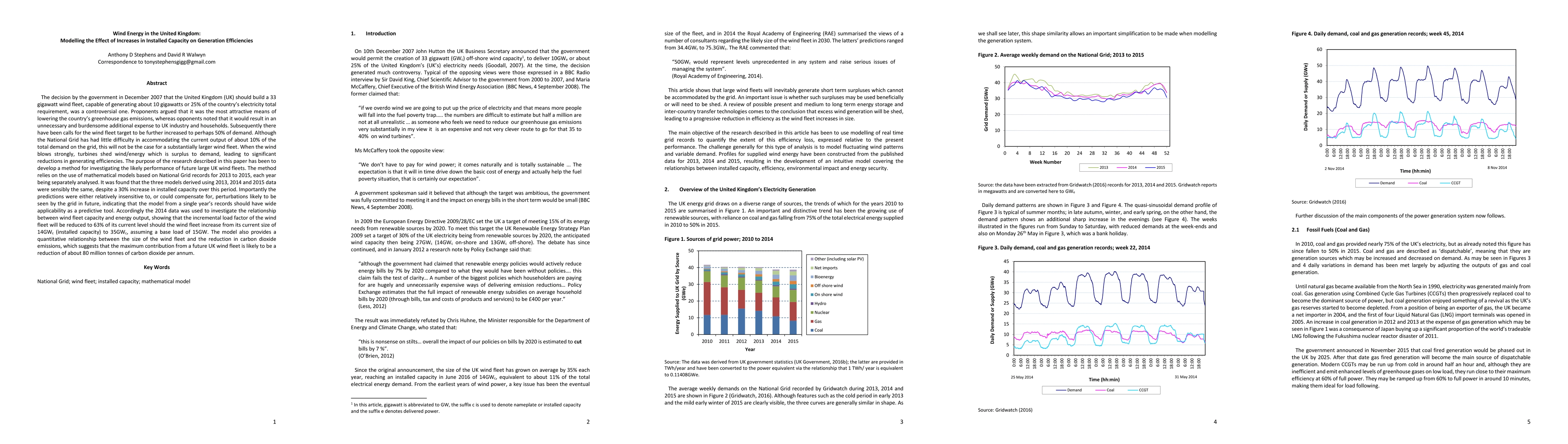 This paper models the impact of increasing UK wind energy capacity to 35GW from the current 14GW, finding that generation efficiency will drop to 63% of its current level due to surplus wind during strong winds. The study uses mathematical models based on National Grid records from 2013 to 2015 to predict future performance.
