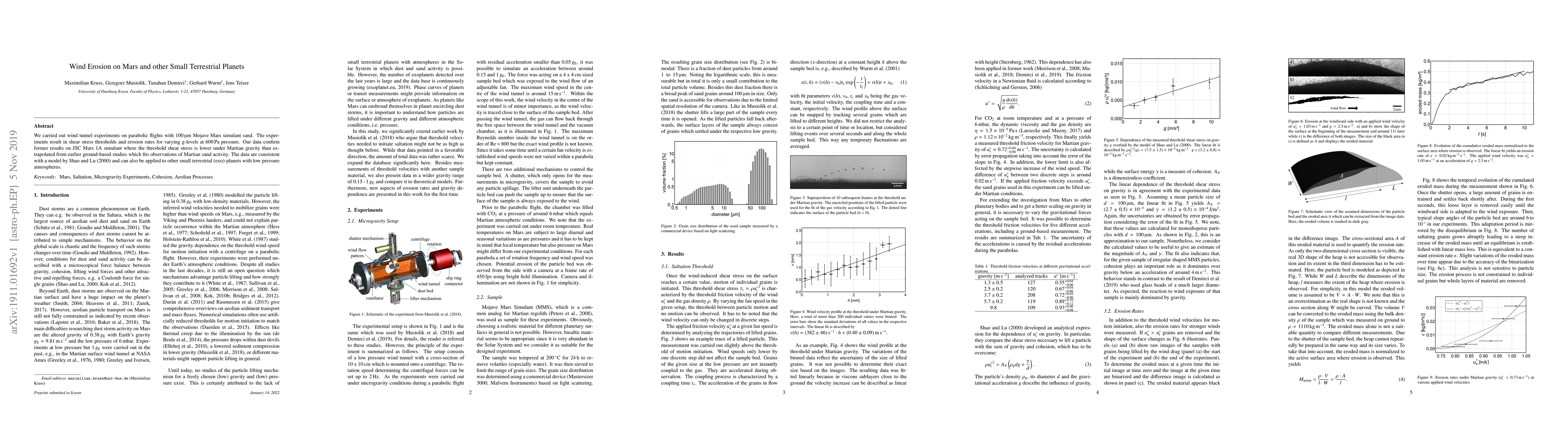 Researchers tested wind erosion on Mars simulant sand in a wind tunnel experiment, confirming lower shear stress thresholds under Martian gravity, which matches observations of Martian sand activity.