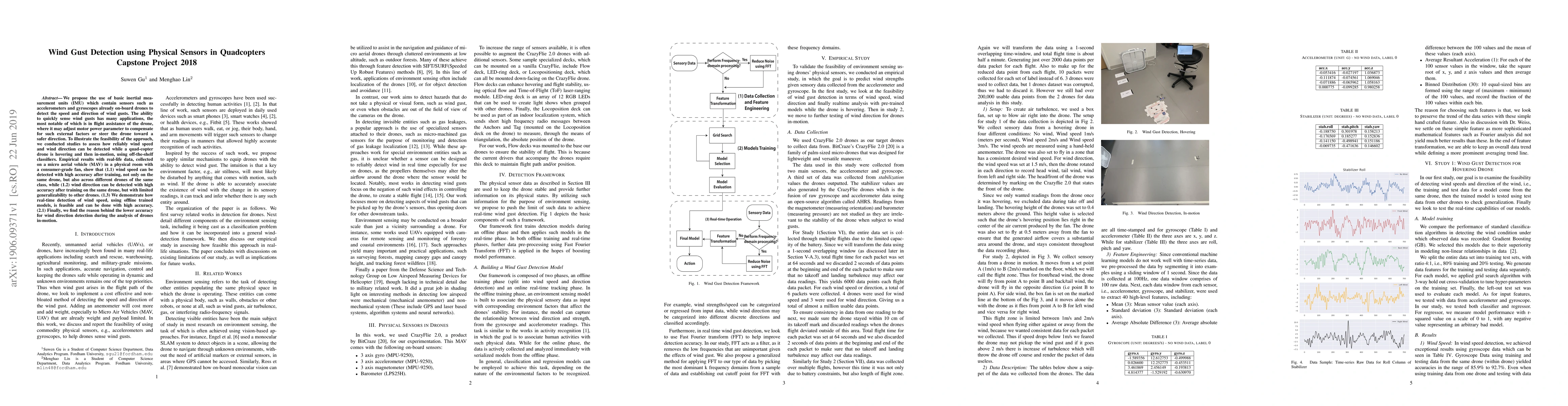 This paper proposes using IMU sensors on quadcopters to detect wind gusts, showing high accuracy in wind speed detection across drones and real-time feasibility. Wind direction detection is accurate for the same drone but has limited generalizability to others, with analysis revealing reasons for this discrepancy.