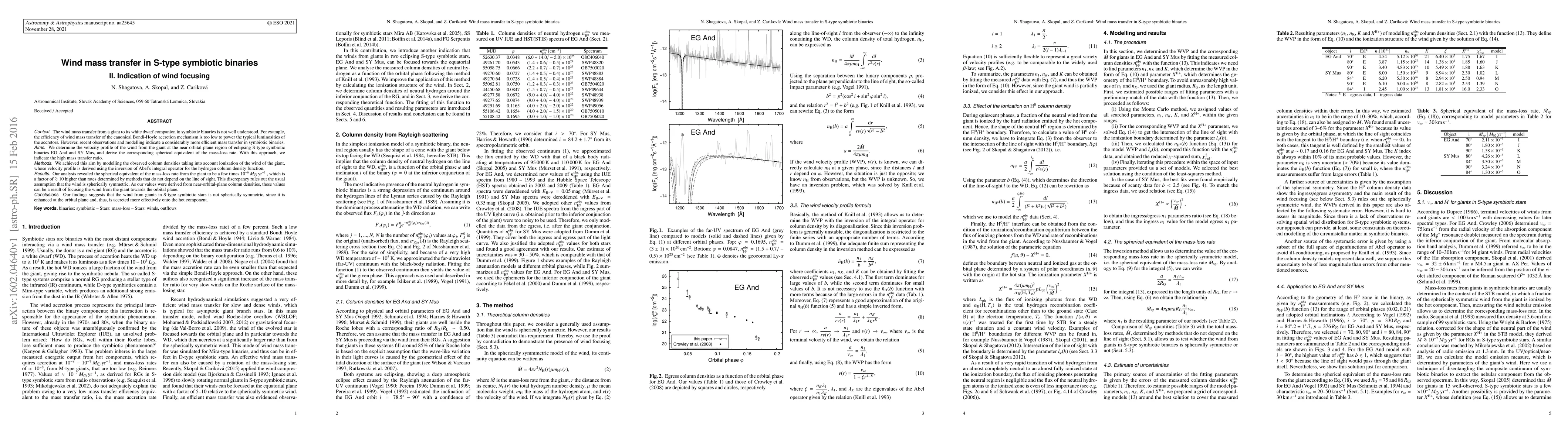 Context. The wind mass transfer from a giant to its white dwarf companion in symbiotic binaries is not well understood. For example, the efficiency of wind mass transfer of the canonical Bondi-Hoyle accretion mechanism is too low to power the typical luminosities of the accretors. However, recent observations and modelling indicate a considerably more efficient mass transfer in symbiotic binaries. Aims. We determine the velocity profile of the wind from the giant at the near-orbital-plane region of eclipsing S-type symbiotic binaries EG And and SY Mus, and derive the corresponding spherical equivalent of the mass-loss rate. With this approach, we indicate the high mass transfer ratio. Methods. We achieved this aim by modelling the observed column densities taking into account ionization of the wind of the giant, whose velocity profile is derived using the inversion of Abel's integral operator for the hydrogen column density function. Results. Our analysis revealed the spherical equivalent of the mass-loss rate from the giant to be a few times 10^{-6}M_{Sun}/yr, which is a factor of >=10 higher than rates determined by methods that do not depend on the line of sight. This discrepancy rules out the usual assumption that the wind is spherically symmetric. As our values were derived from near-orbital-plane column densities, these values can be a result of focusing the wind from the giant towards the orbital plane. Conclusions. Our findings suggests that the wind from giants in S-type symbiotic stars is not spherically symmetric, since it is enhanced at the orbital plane and, thus, is accreted more effectively onto the hot component.